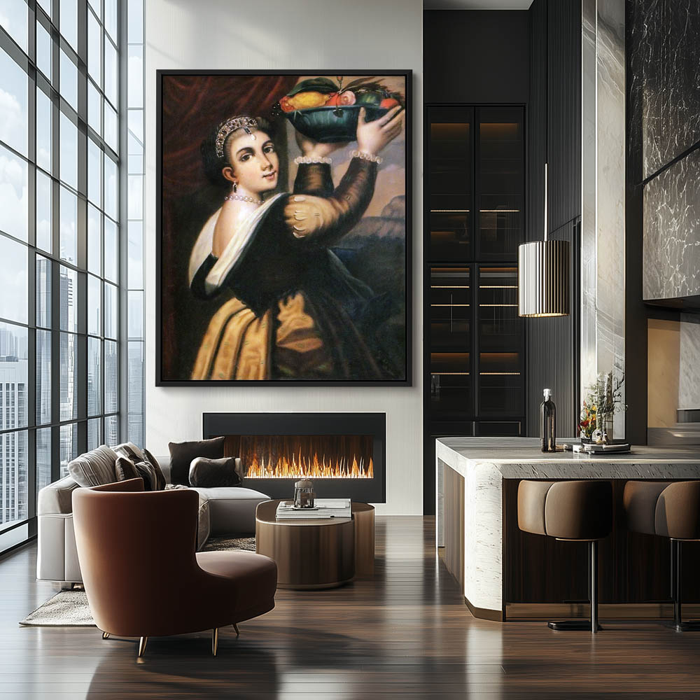 Woman holding fruit and flowers