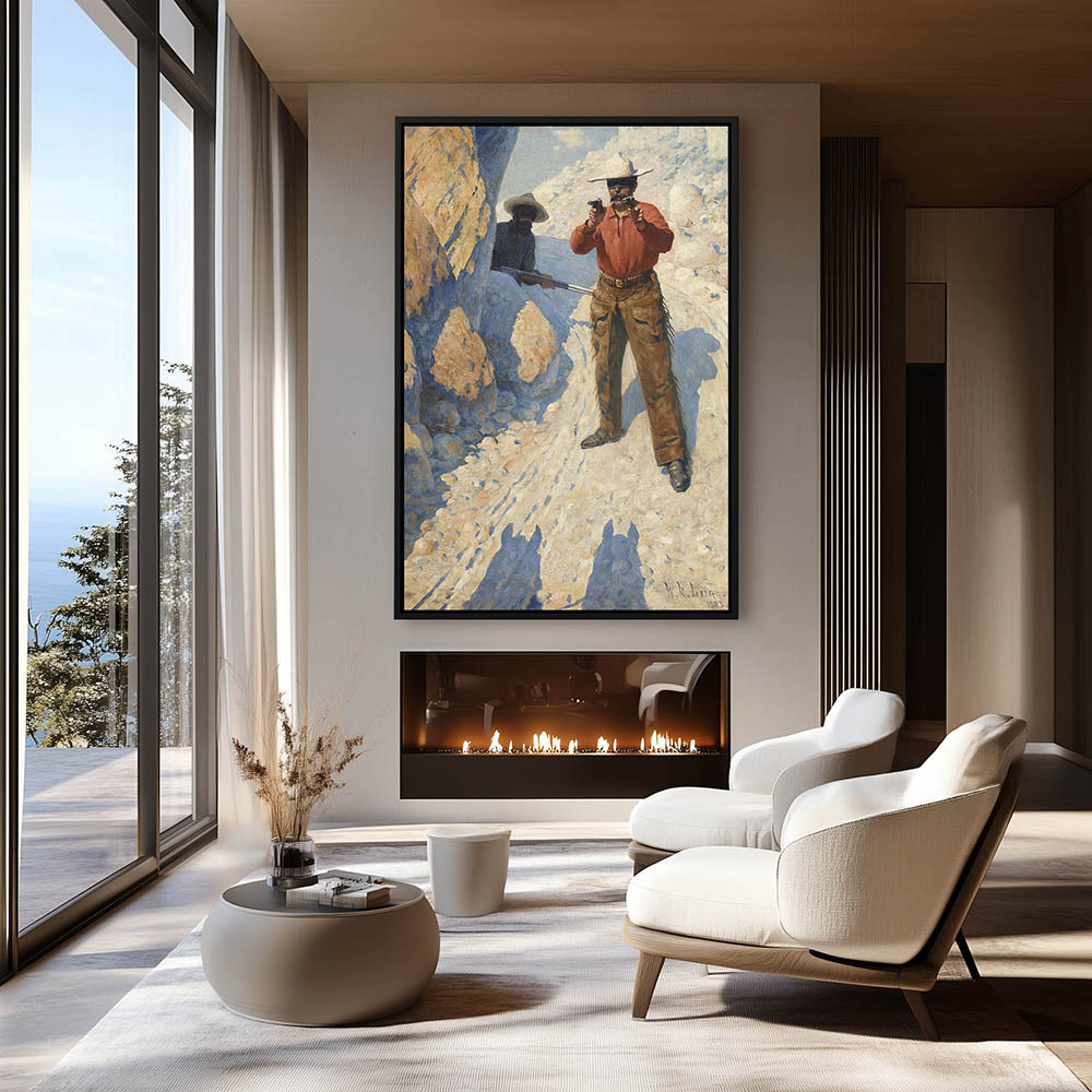 Cowboy on horseback with his gun drawn
