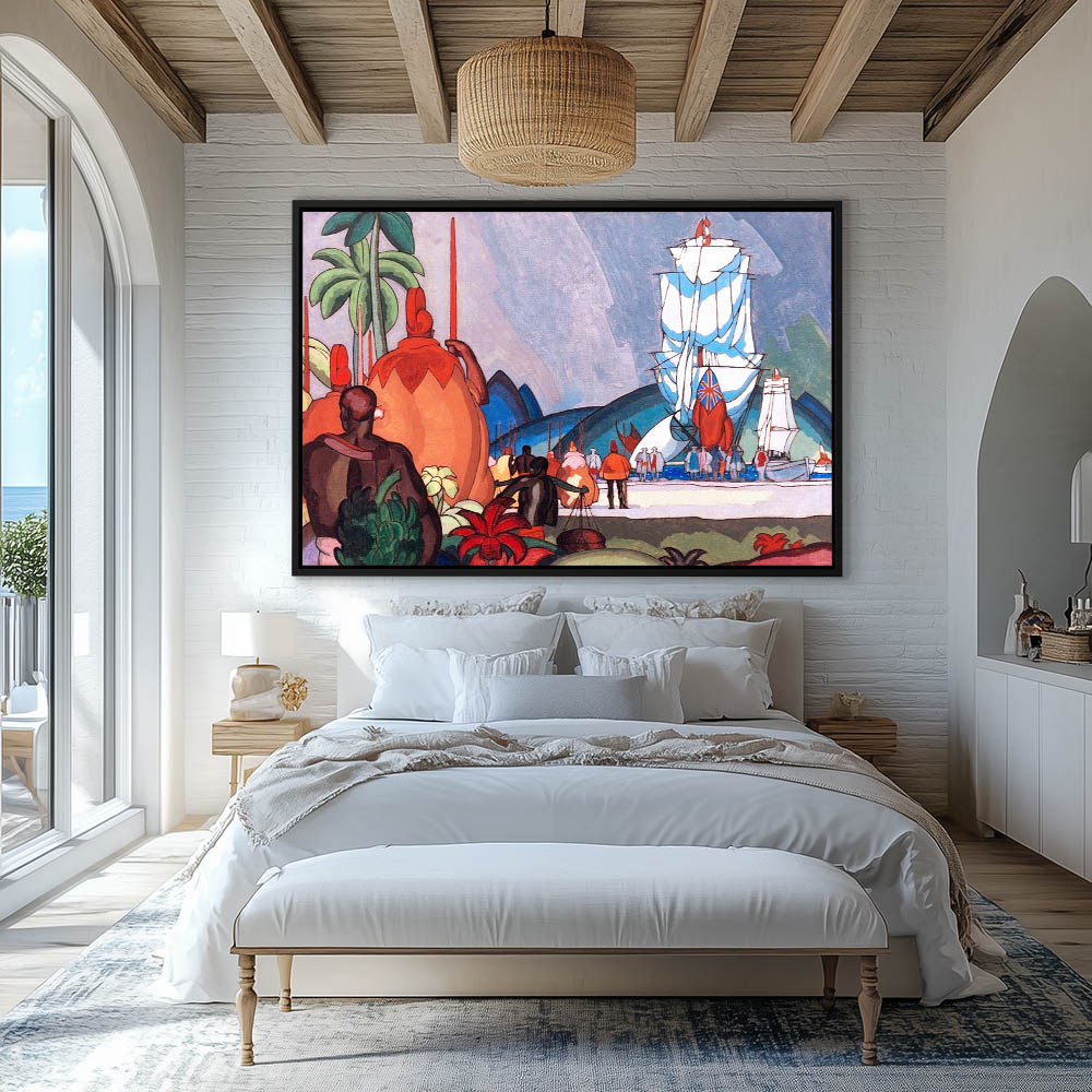 Abstract Painting with Figures in Hawaii Greeting a Ship