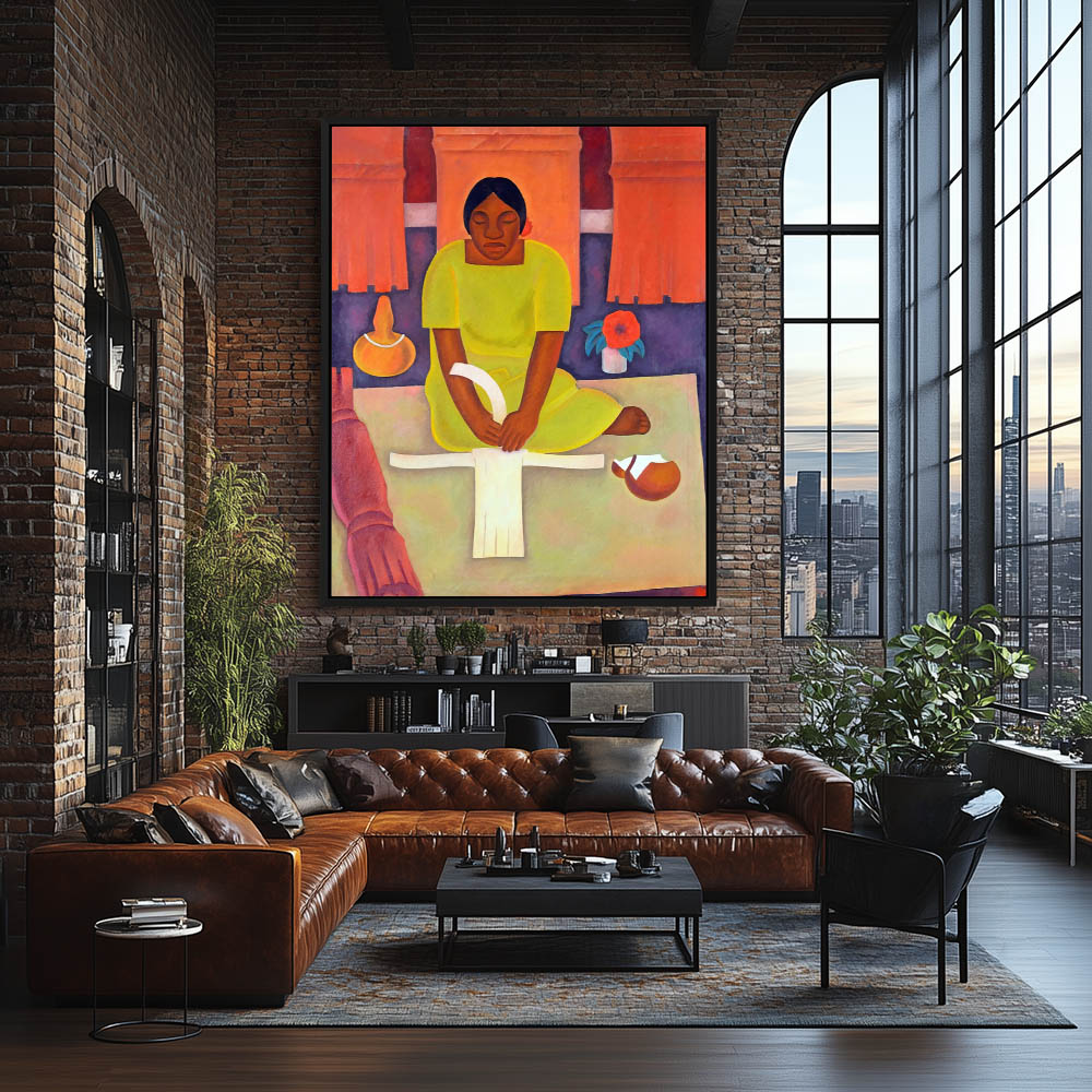Woman Weaving a Mat
