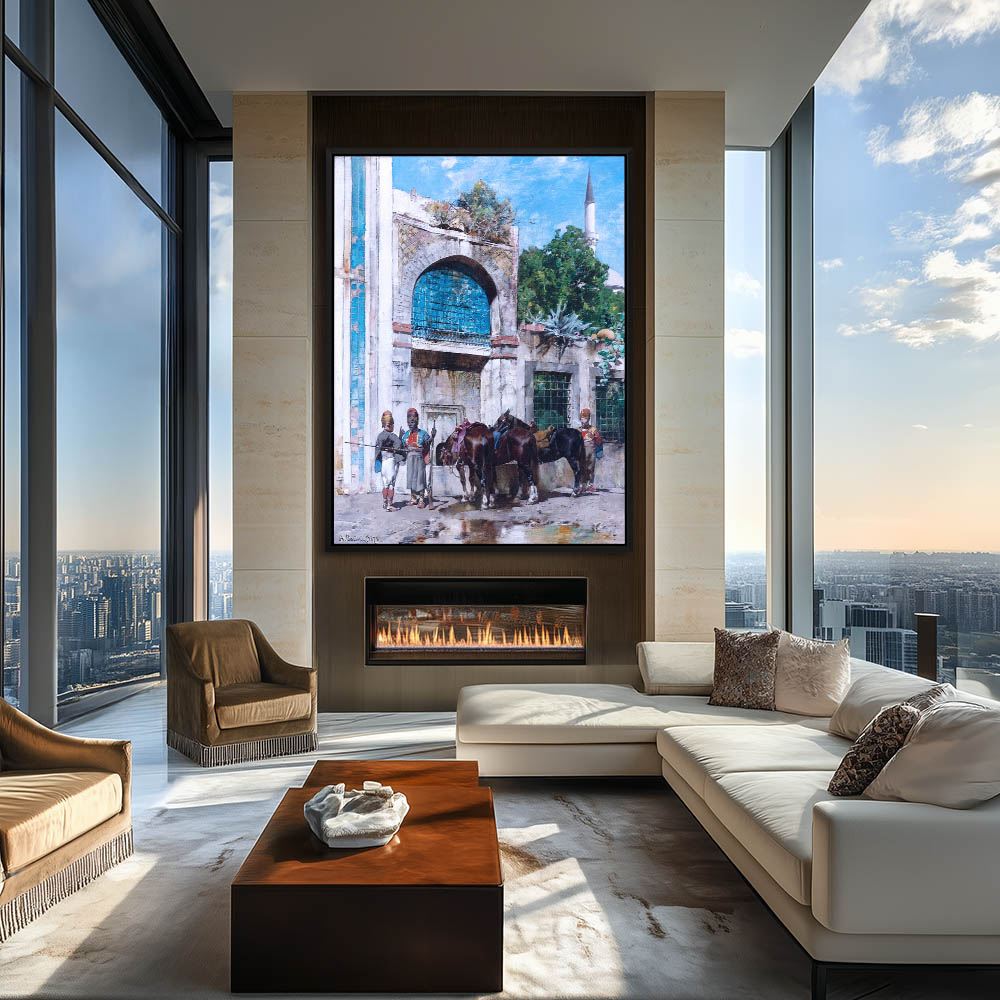 From $29.970 out of 5Landscape Painting of Three Figures with Three Horses Drinking