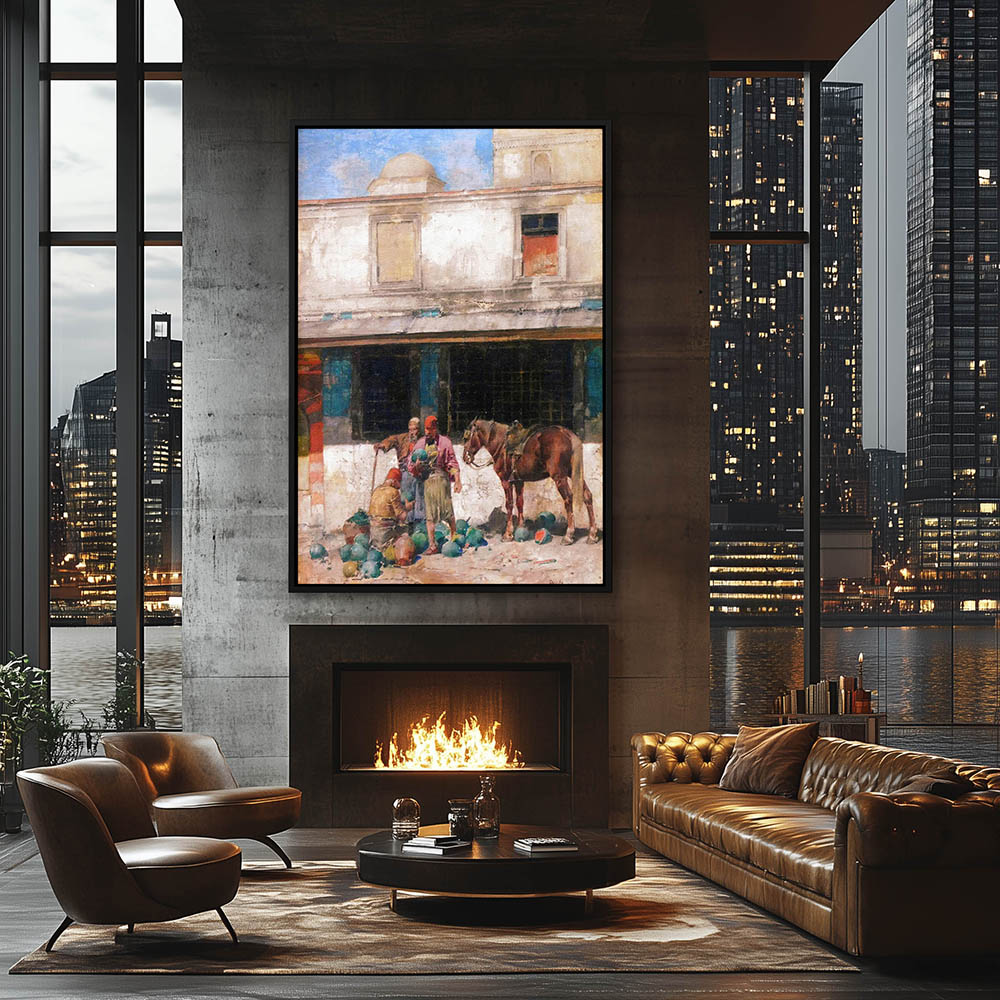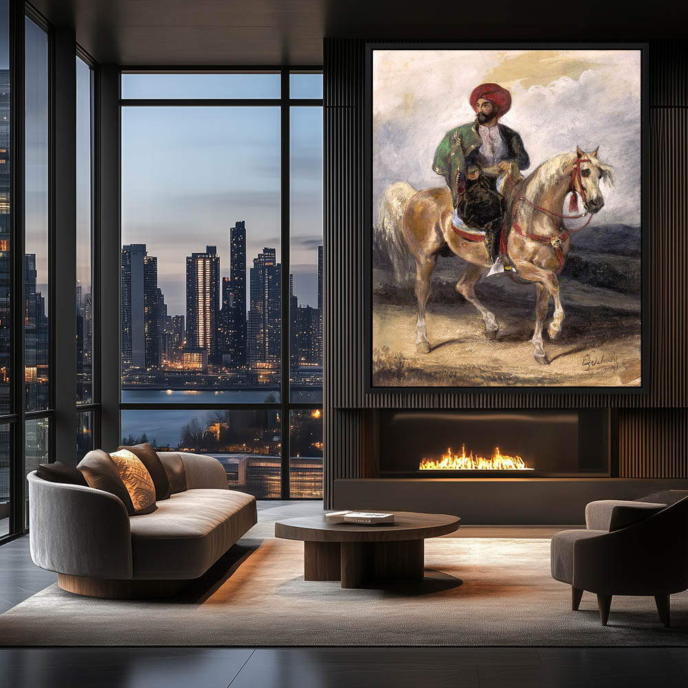 Vintage Figurative Animal Painting of a Tirkish Man on Horseback