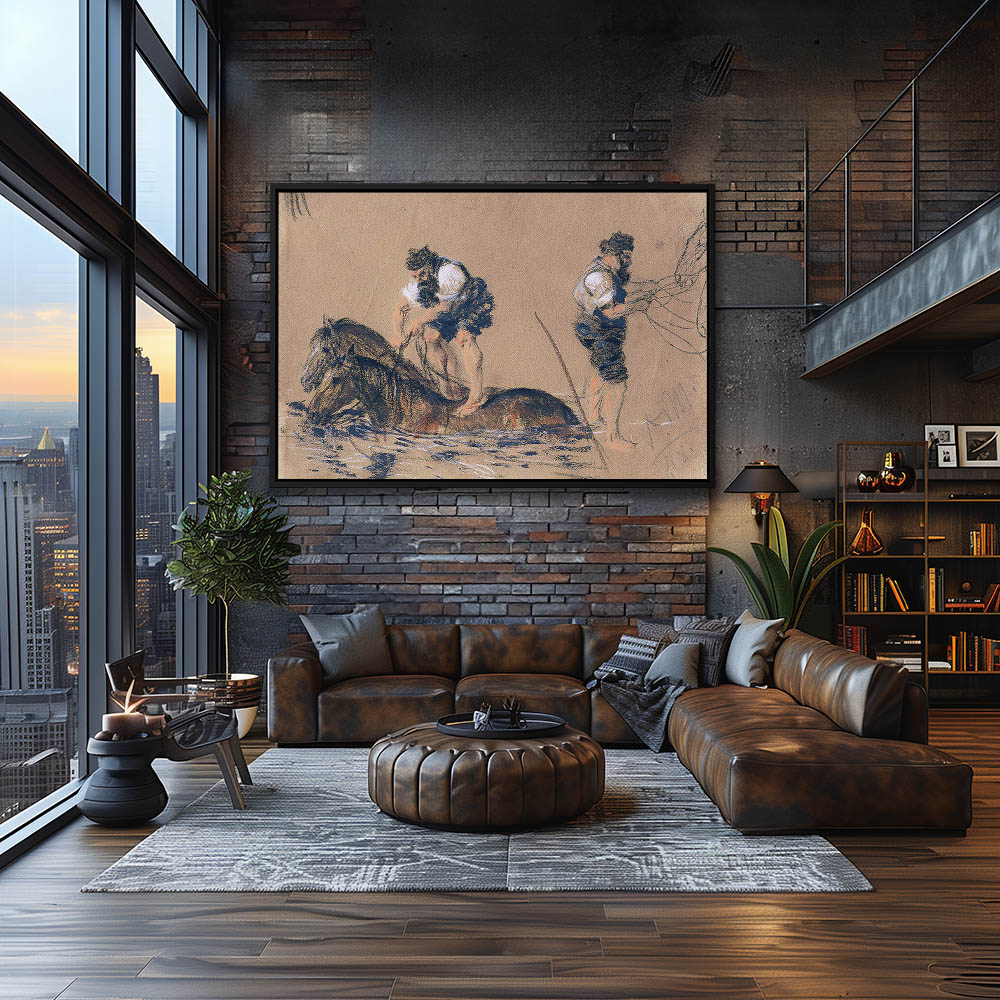 Vintage Figurative Painting with Horses