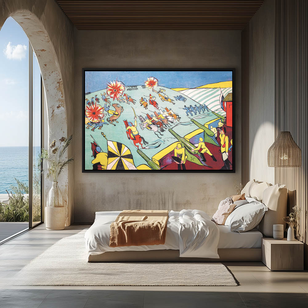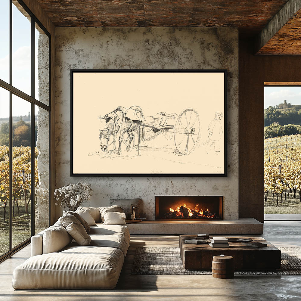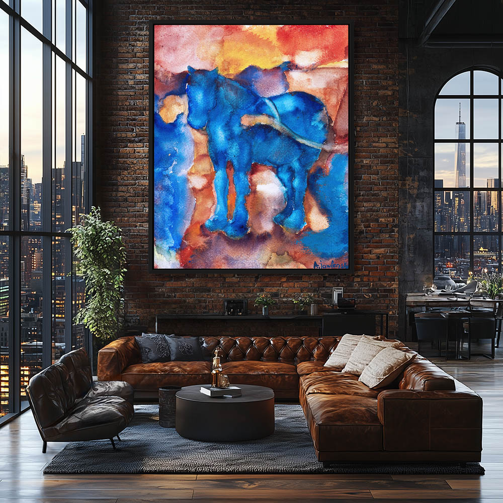 A powerful painting of a black horse in motion beneath a fiery sunset sky, capturing strength, freedom, and untamed beauty.