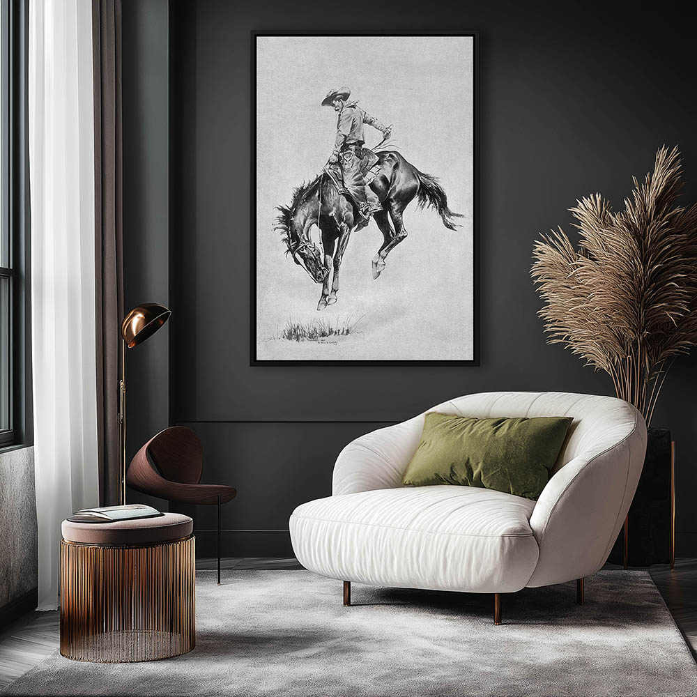 Sketch of a cowboy riding a bucking horse