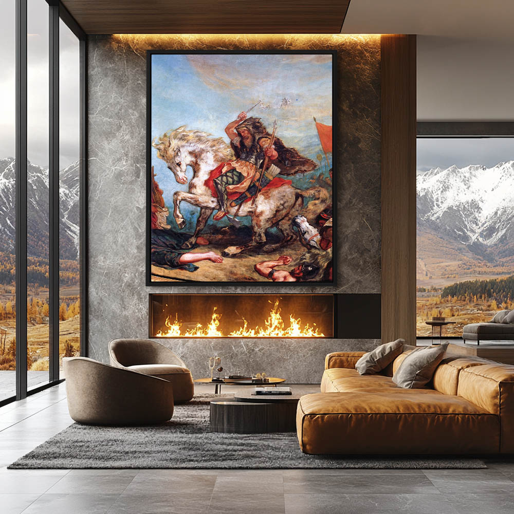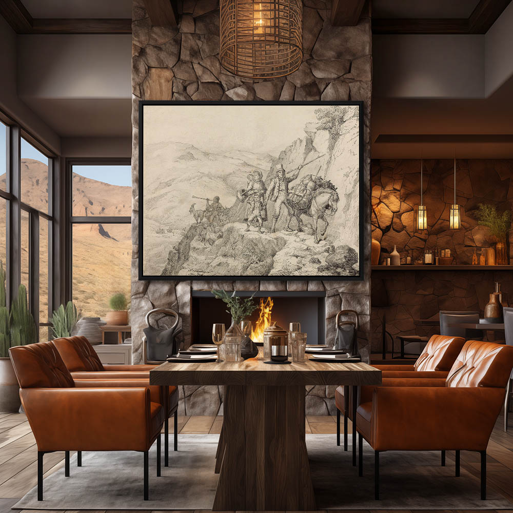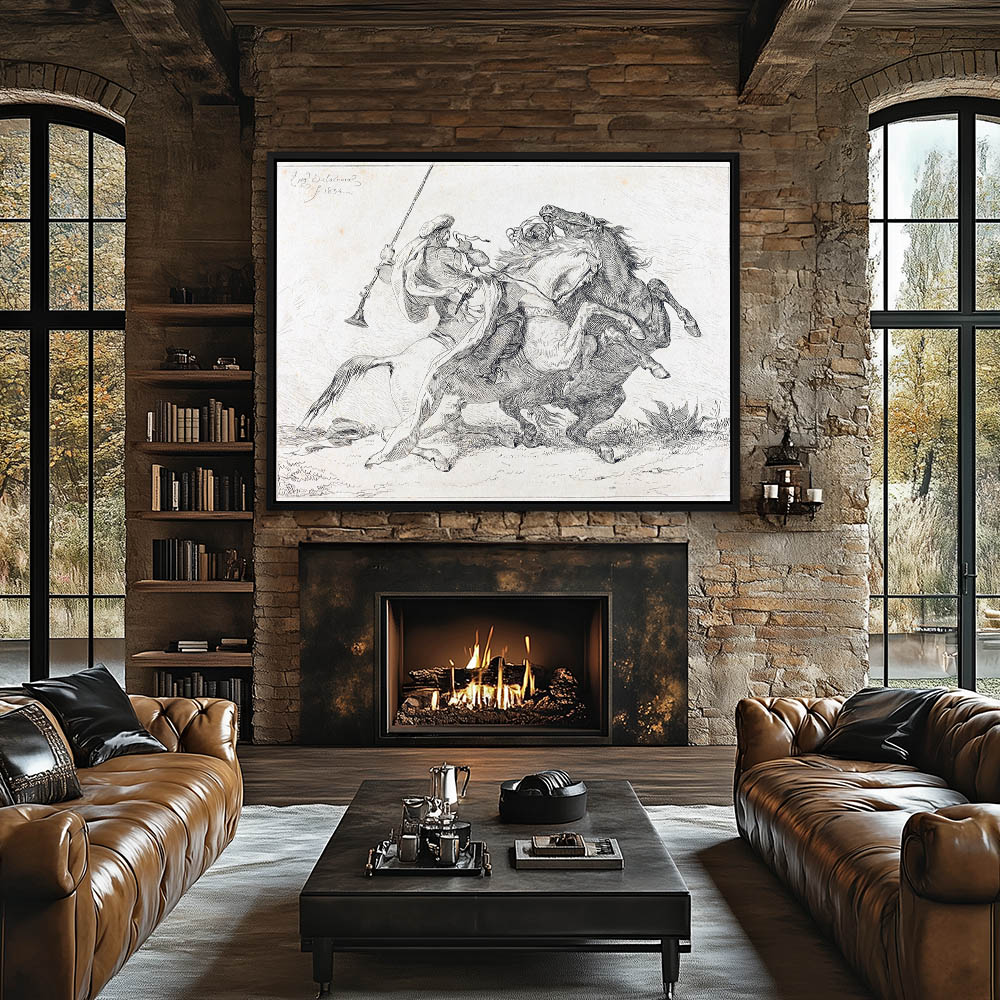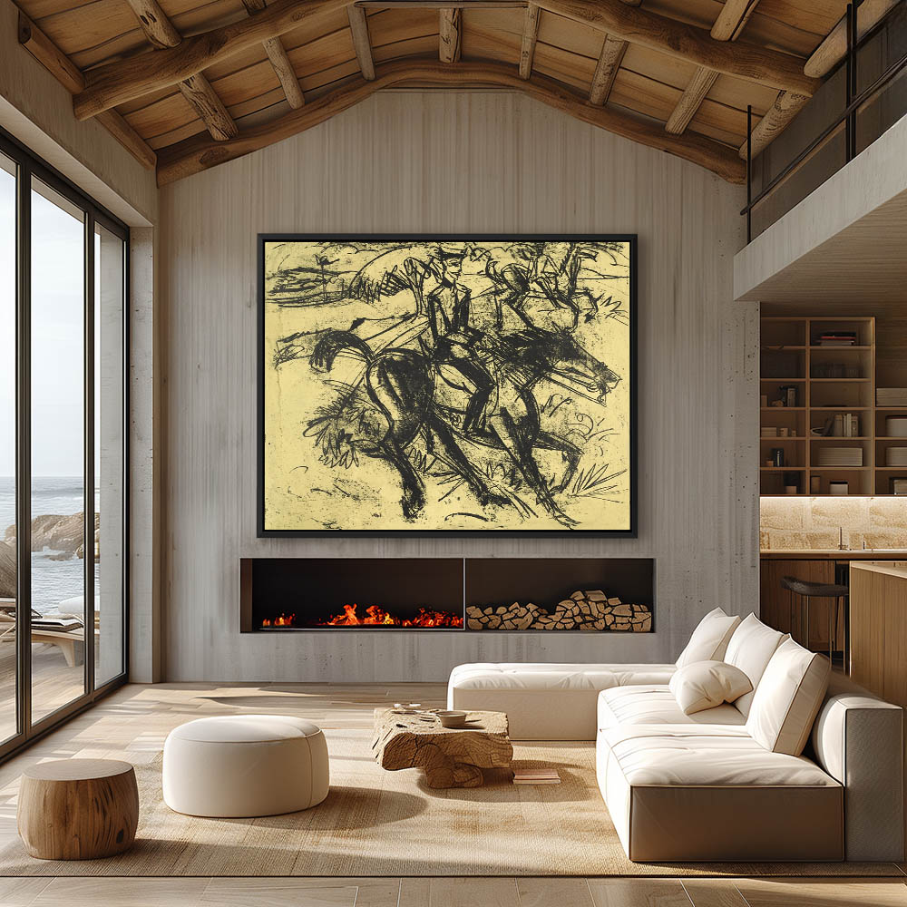 Vintage Landscape Painting with Horse and Riders