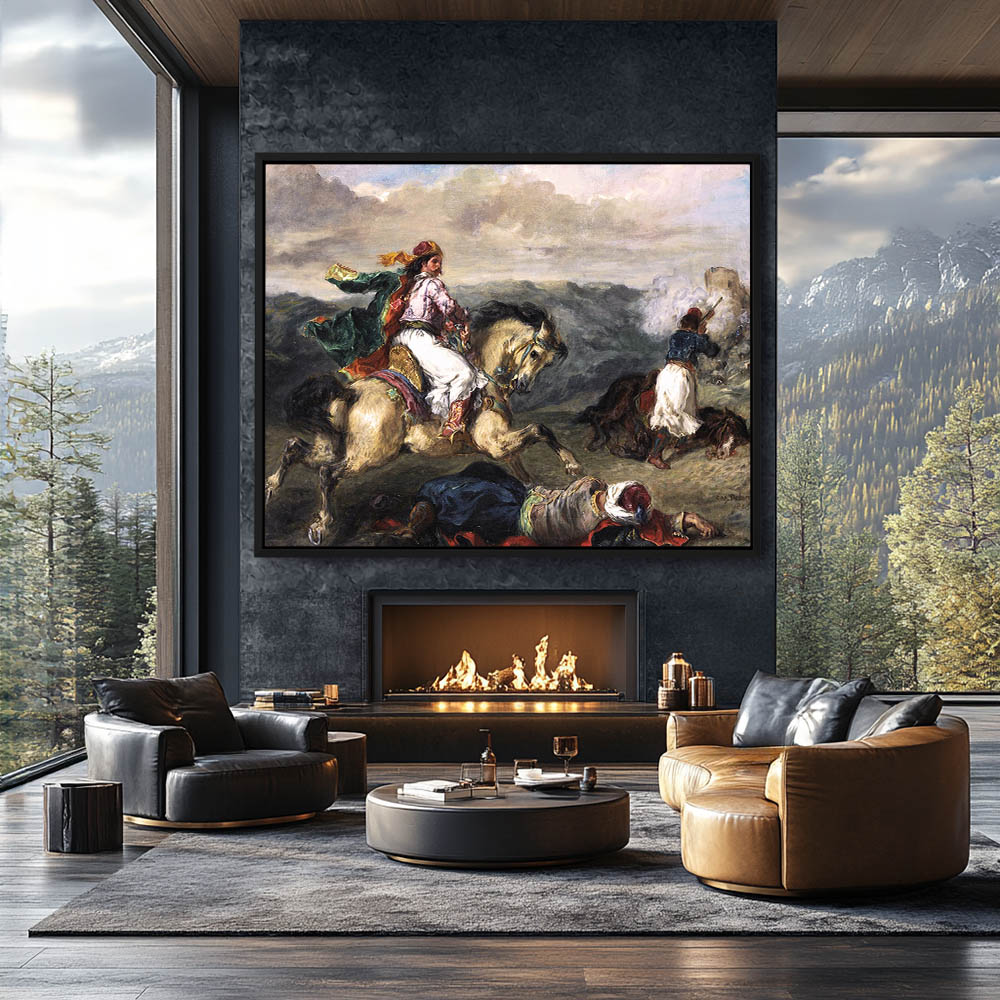 Vintage Figurative Landscape Painting with Greek Horseback Riders in the War of Independence