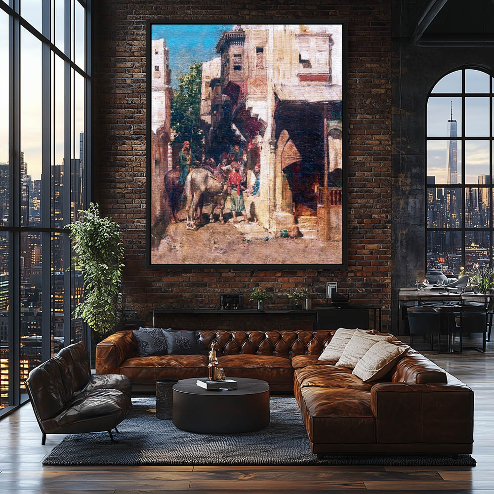 City Street Painting with Figures and Horses