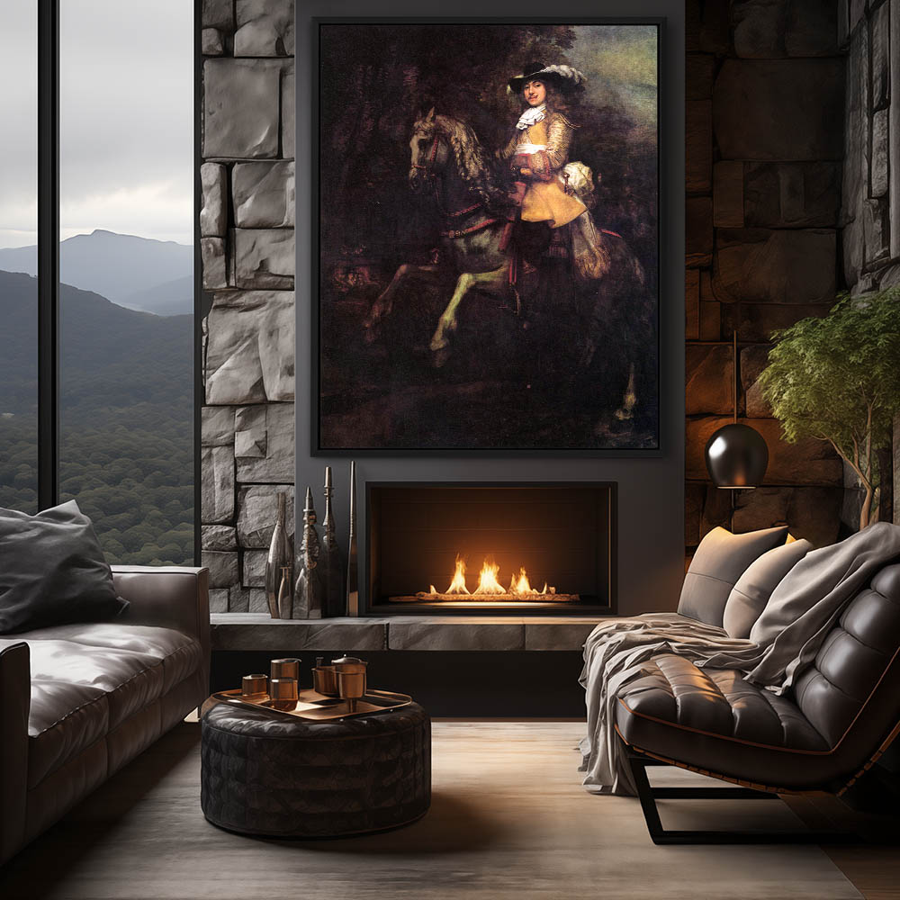 Realism Vintage Figurative Portrait Painting of a Man on Horseback