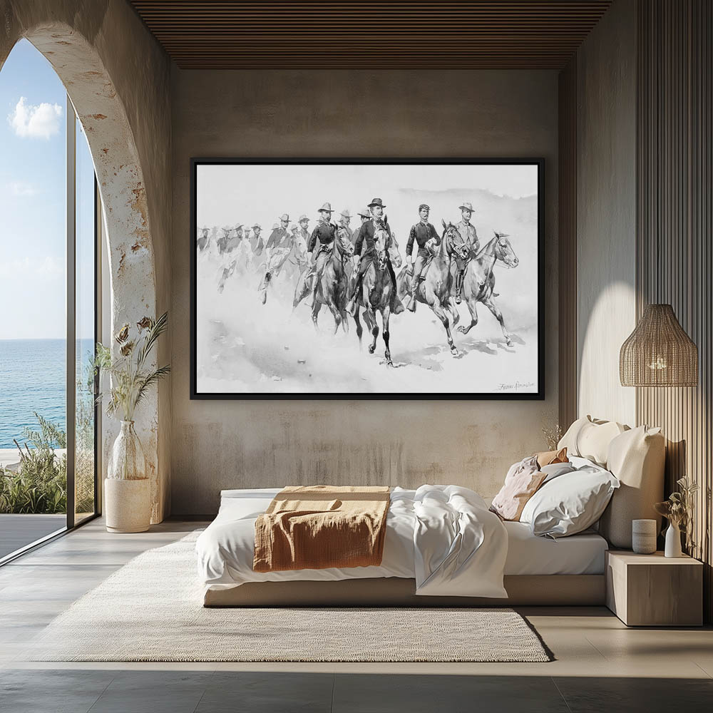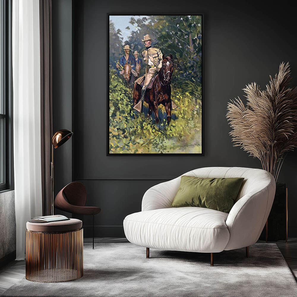 General Lawton on horseback leading soldiers through the forest of Cuba