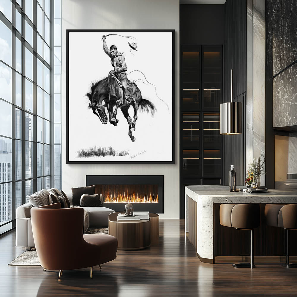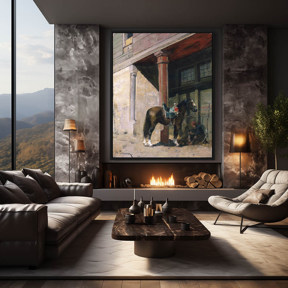 Vintage Figurative Landscape Painting of a Turk Surrendering to a Greek Horseman