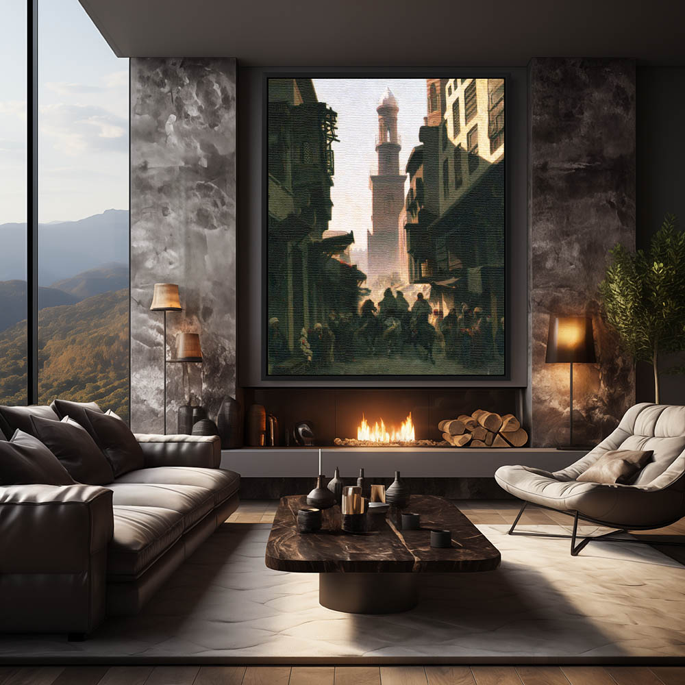 Landscape Painting with Men on Horseback on a City Street in Egypt