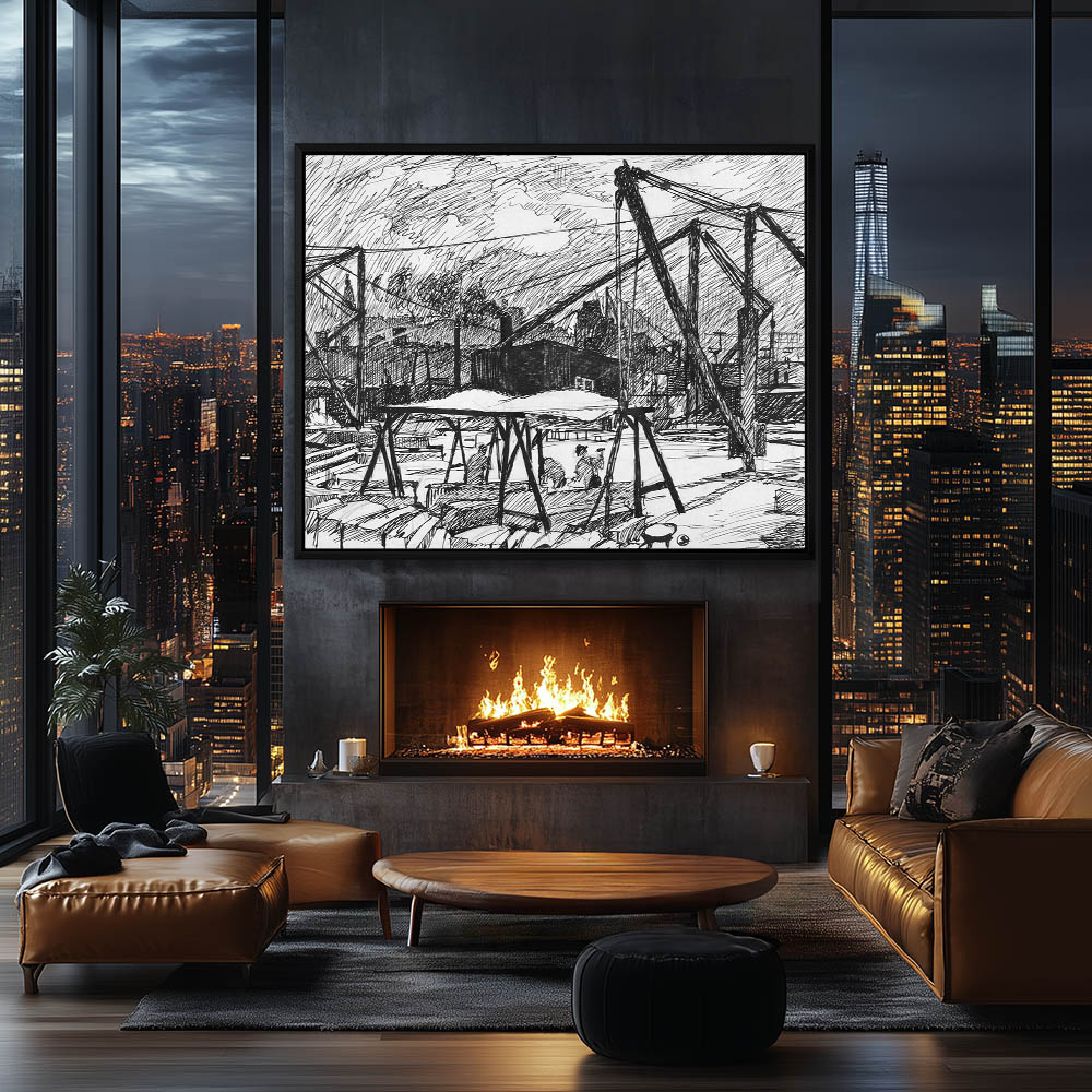From $29.97Abstract Industrial Landscape Painting with Bridges and Structures