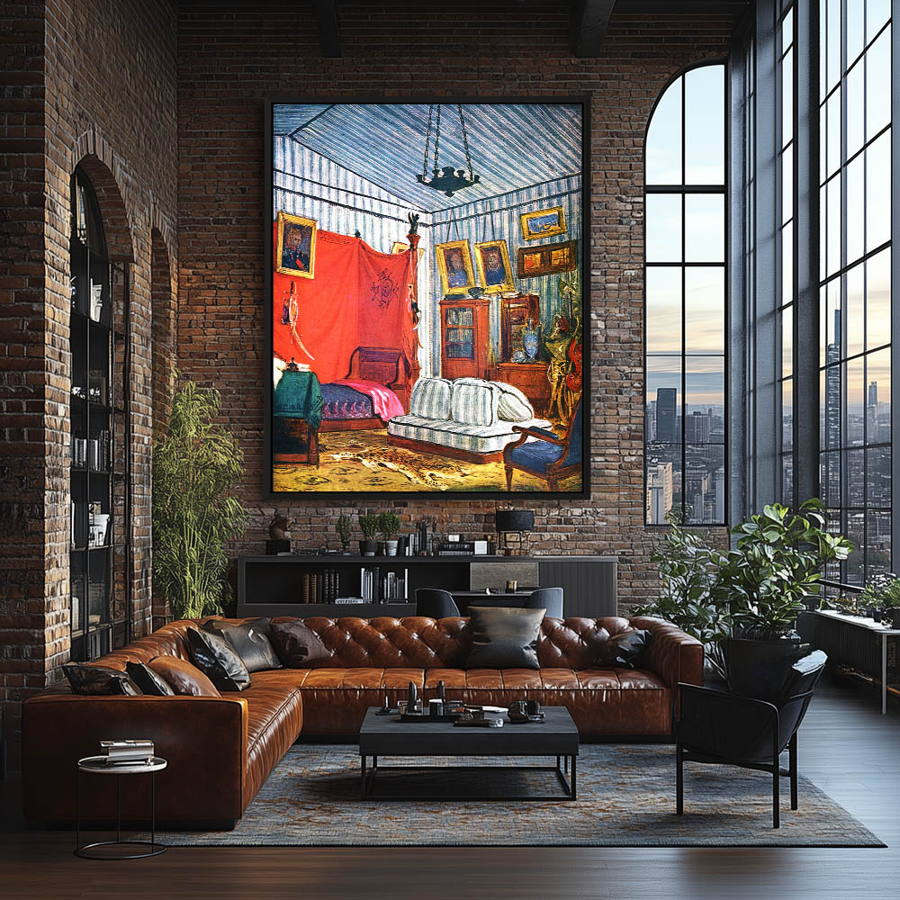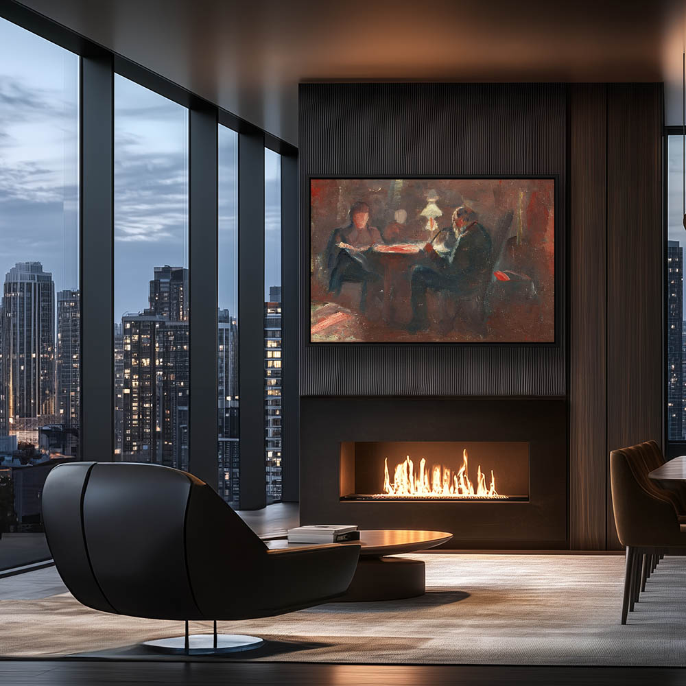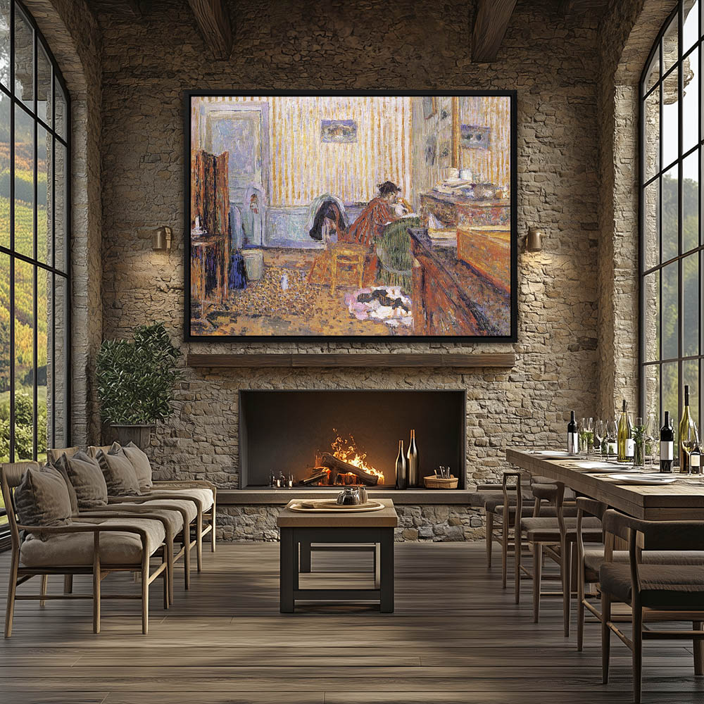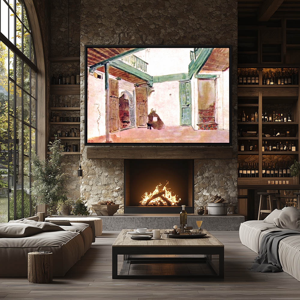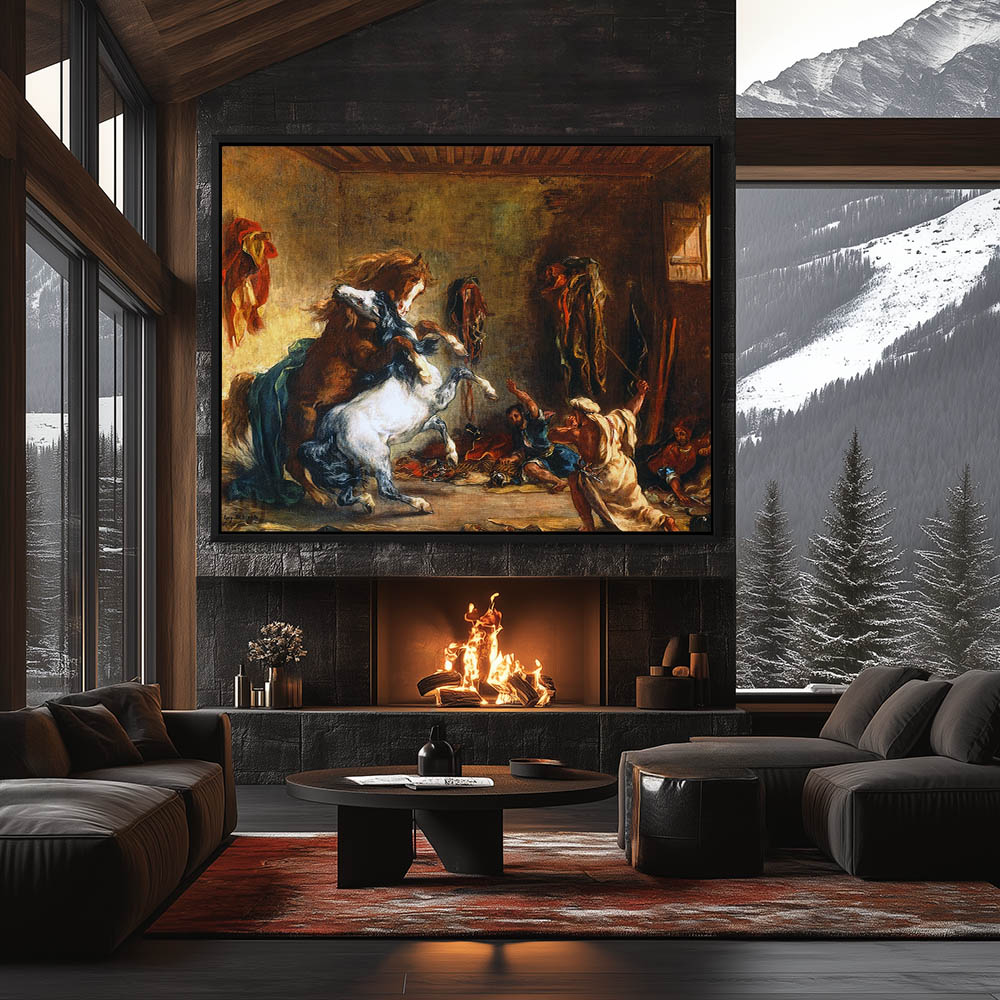 Vintage Figurative Animal Painting with Horses Fighting in the Interior of a Stable