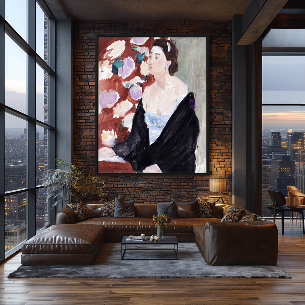 Vintage Figurative Portrait Painting of a Seated Japanese Woman