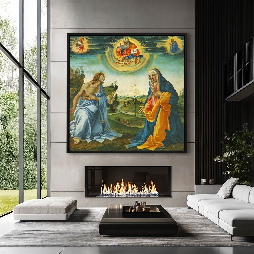 Realism Vintage Painting of a Biblical Stor with Jesus Christ Angels and Mary Mag
