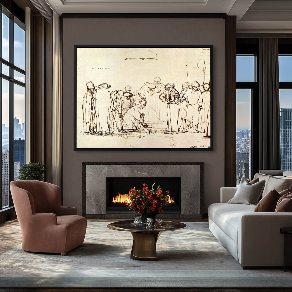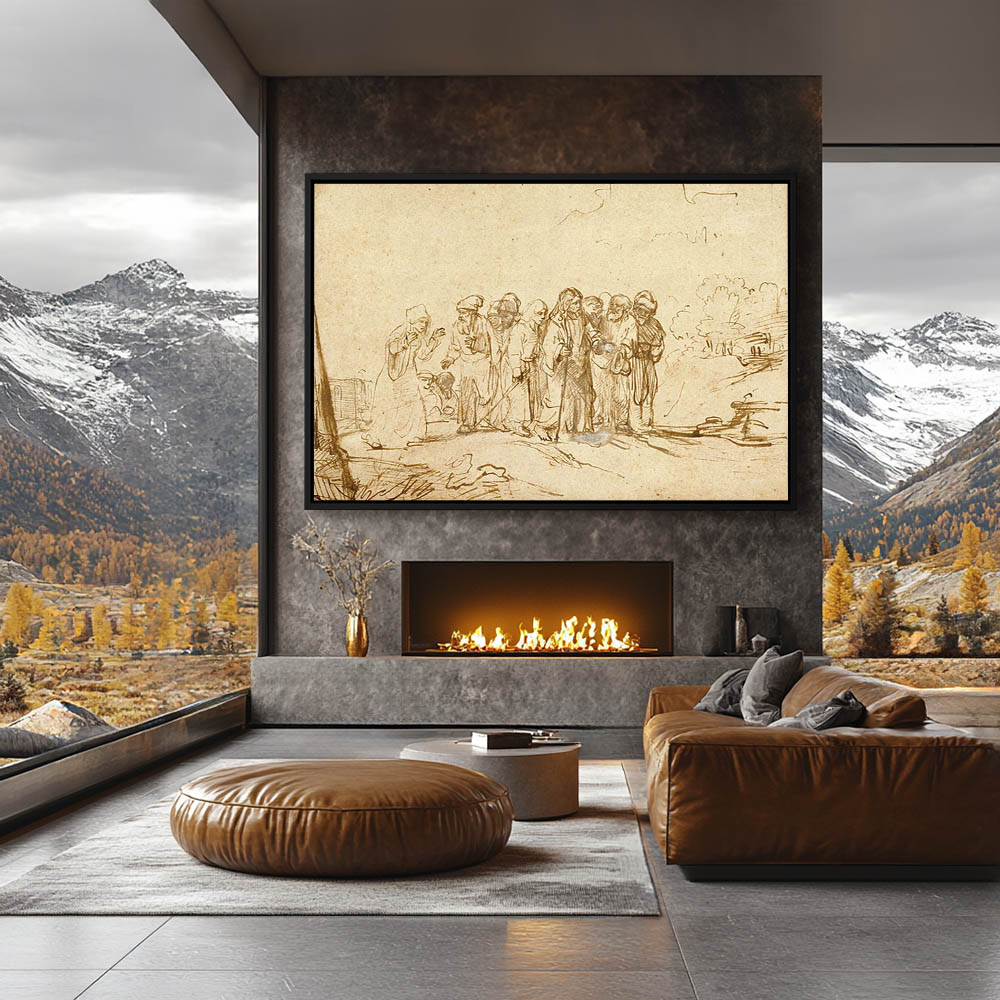 Religious Drawing of a Biblical Story with Jesus Christ