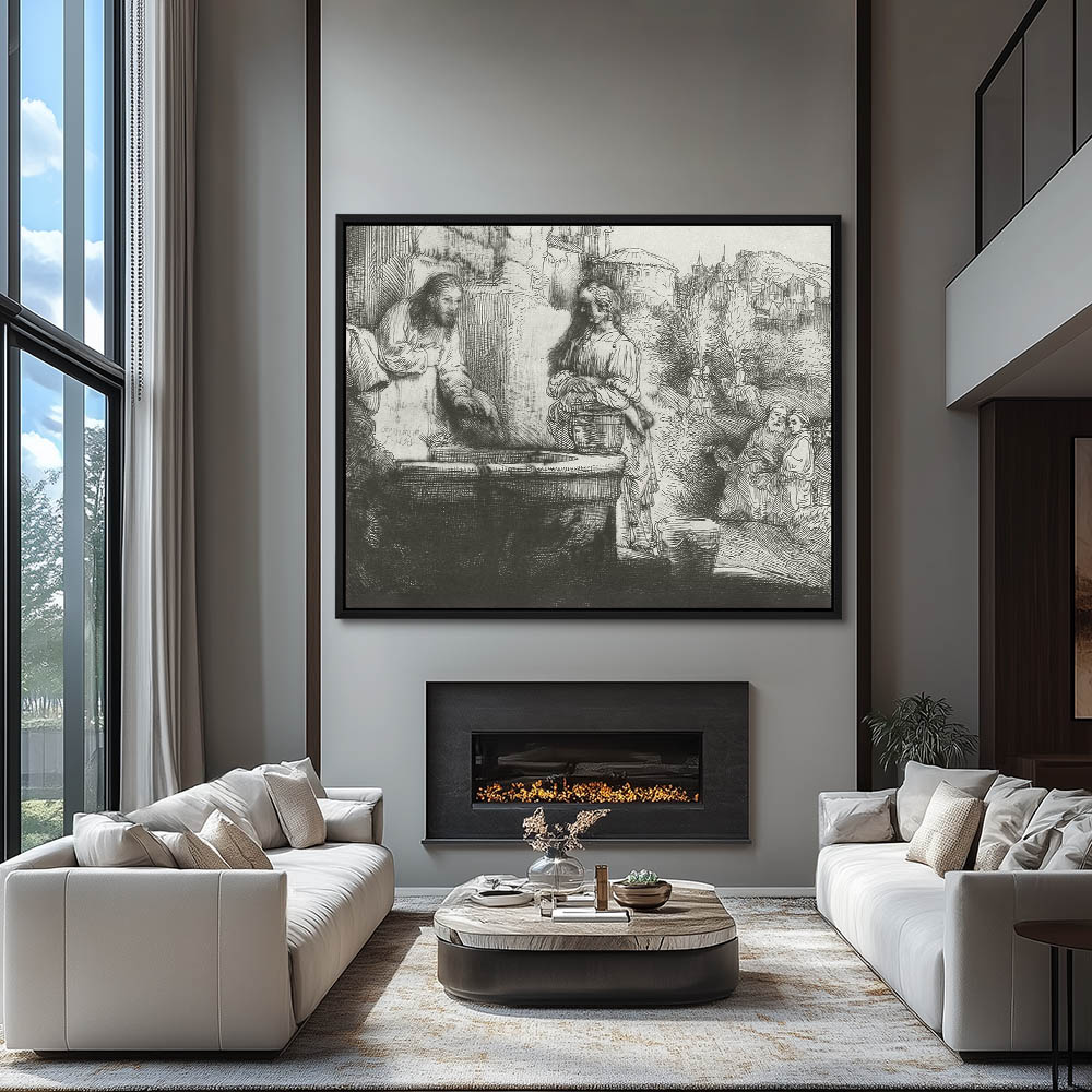 Vintage Religious Drawing of Jesus Christ at the Well