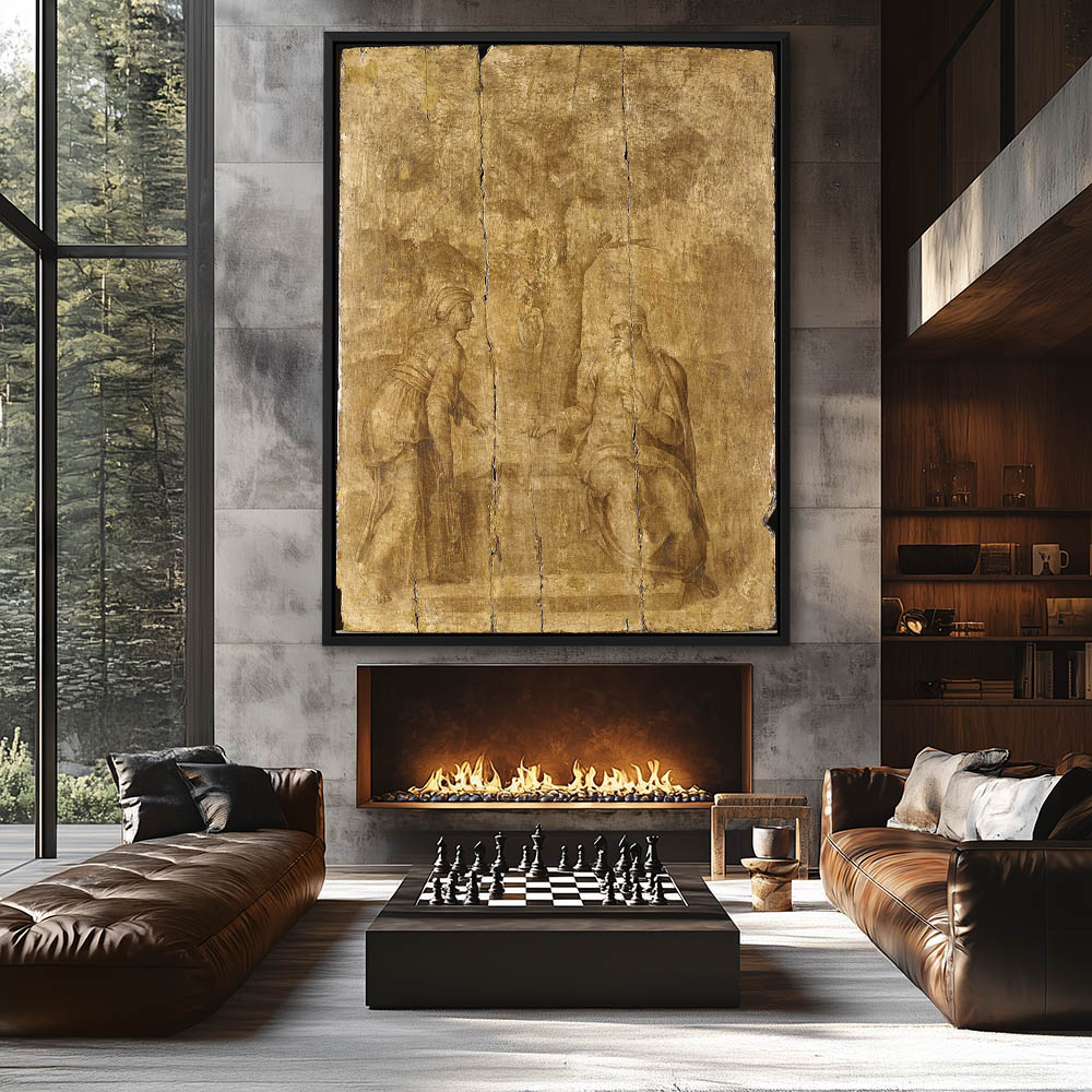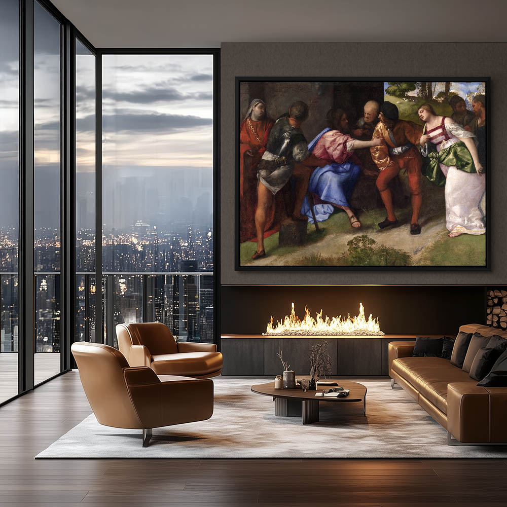 Vintage Religious Painting of Jesus Christ and the Adultress
