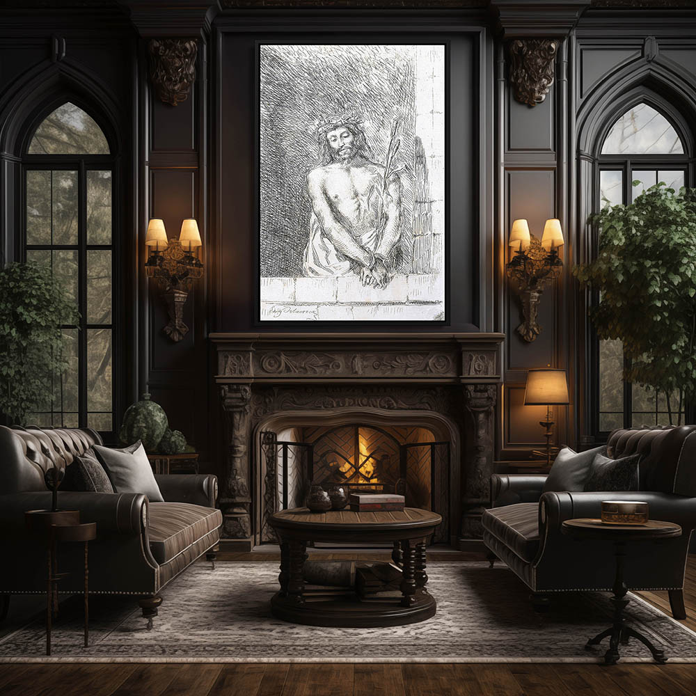 Vintage Religious Drawing of Jesus Christ with the Reed