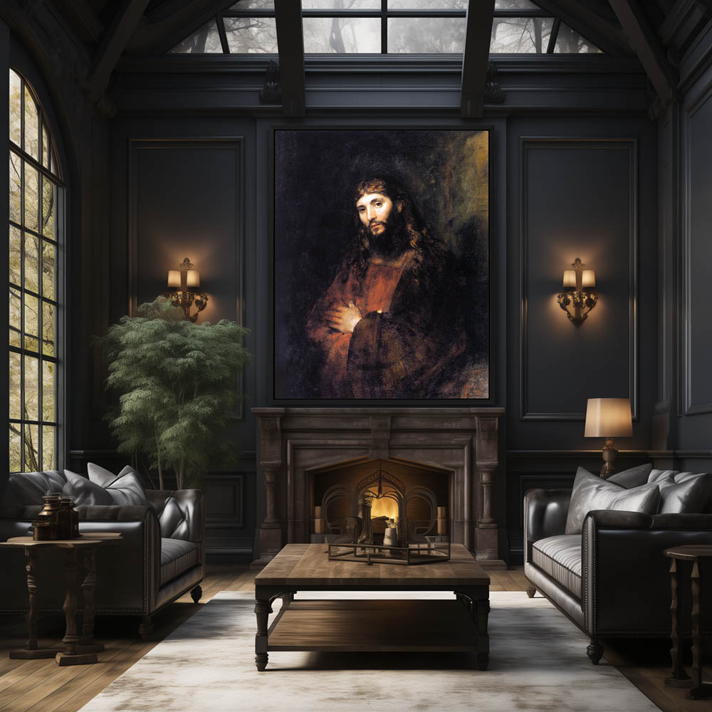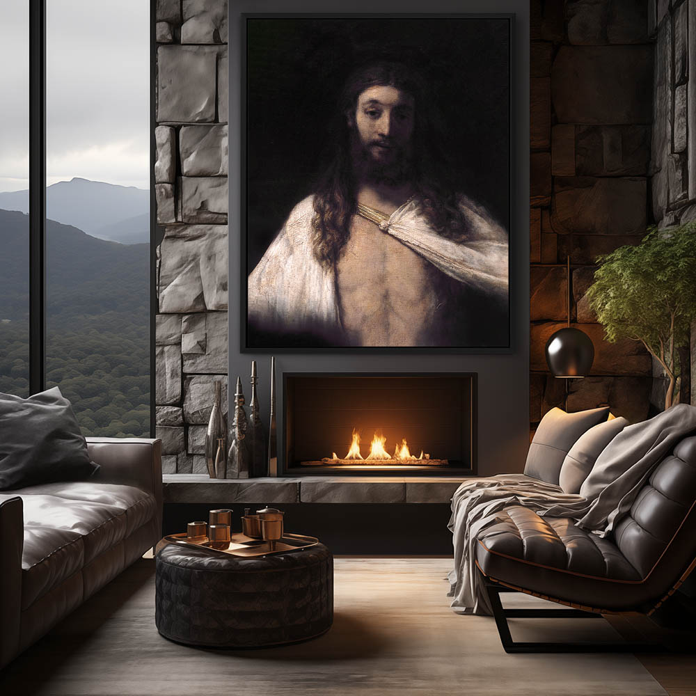 Realism Vintage Figurative Portrait Painting of Jesus Christ after the Resurrection