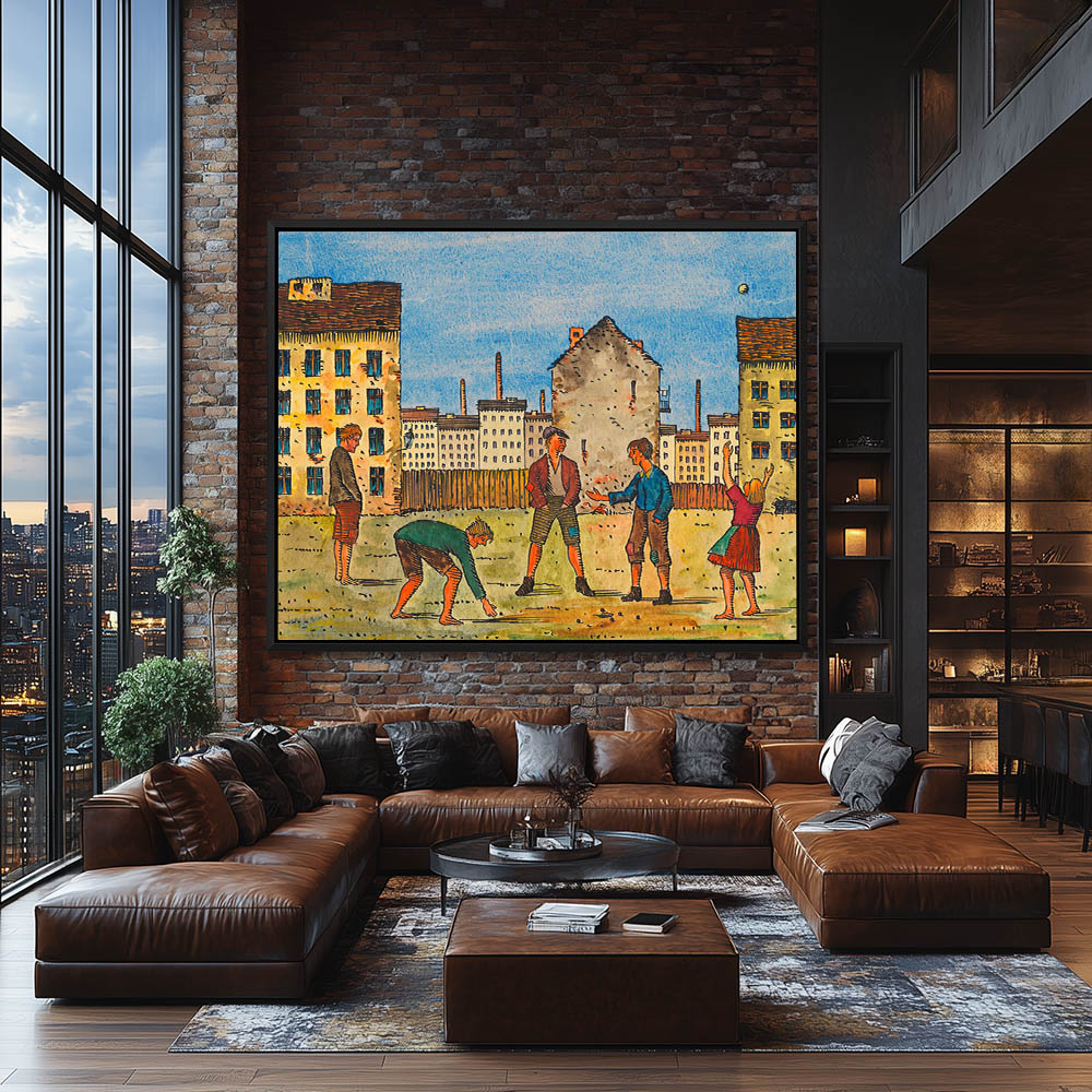 Urban landscape with children playing