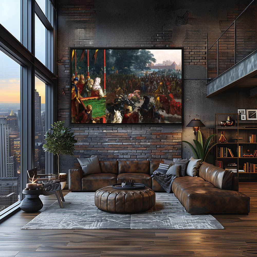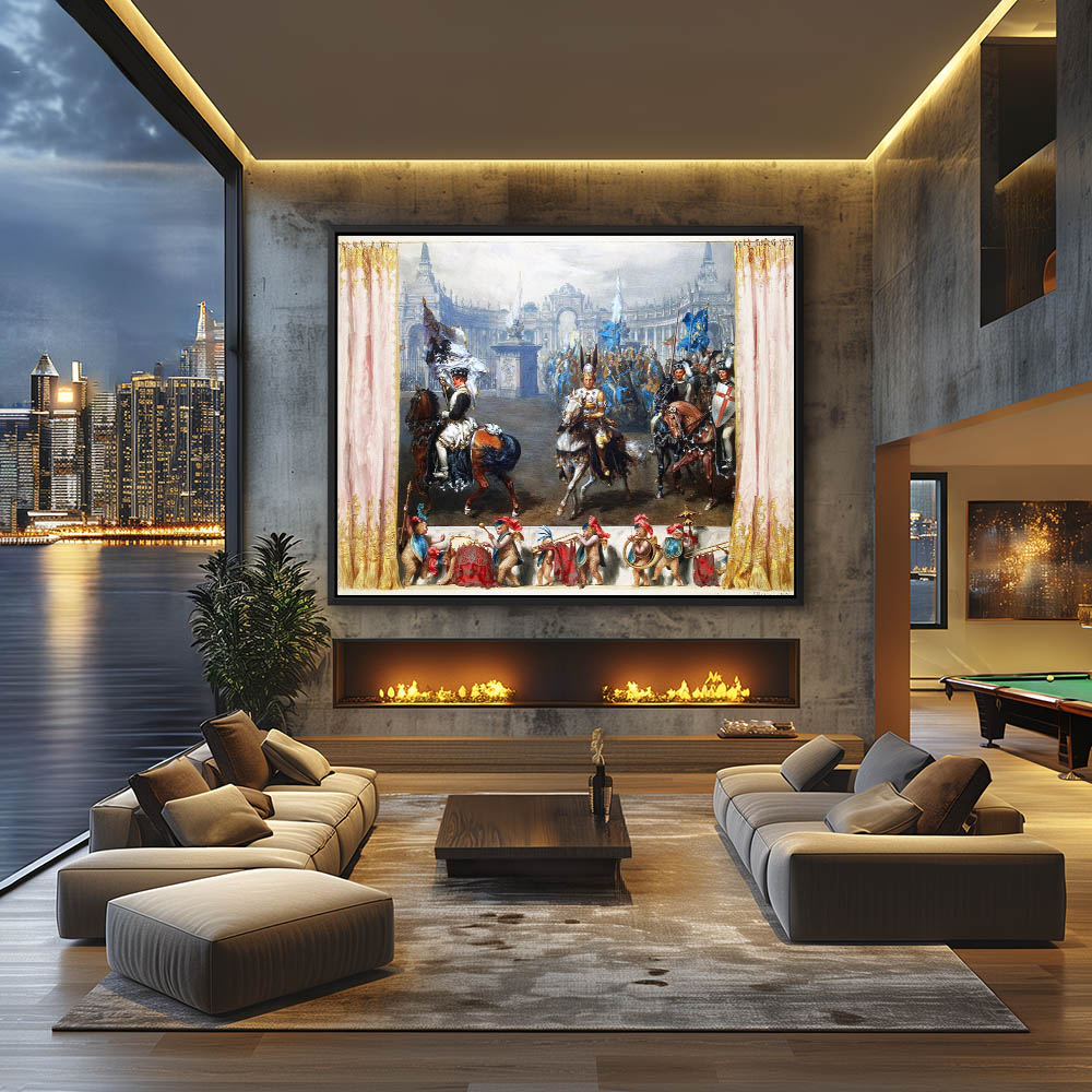 Vintage Figurative Painting of Knights on Horseback