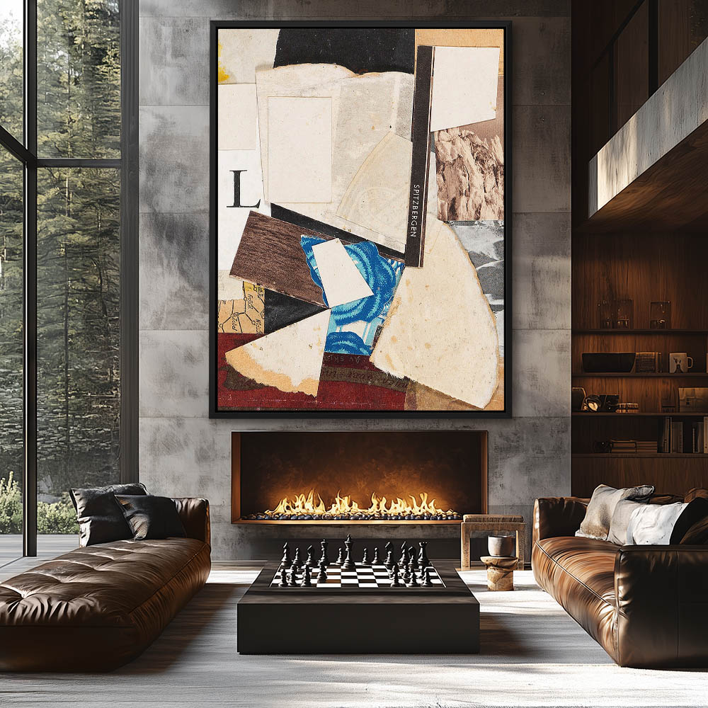 Abstract collage with colored paper and charcoal