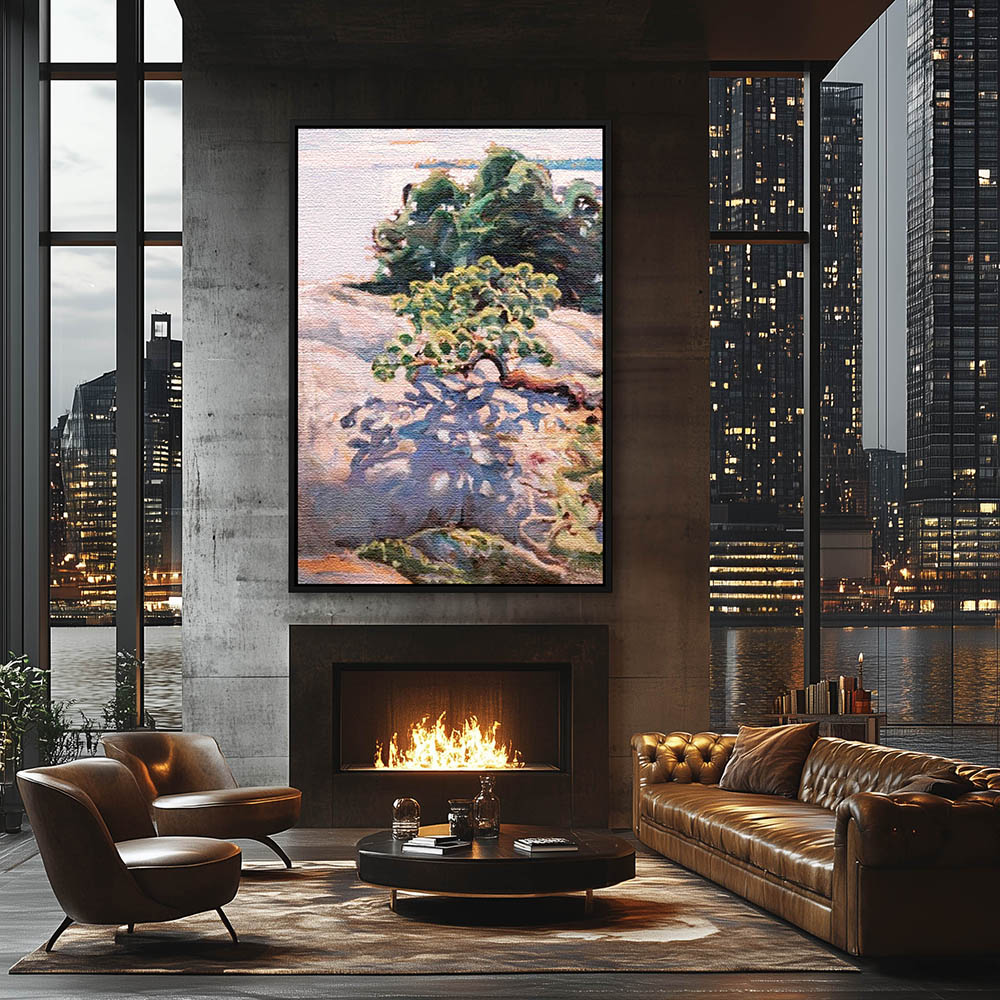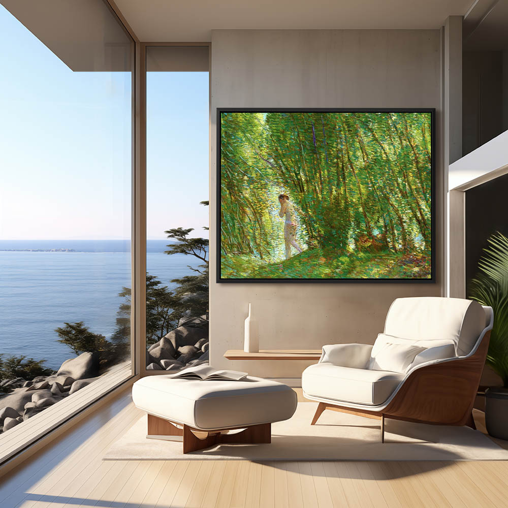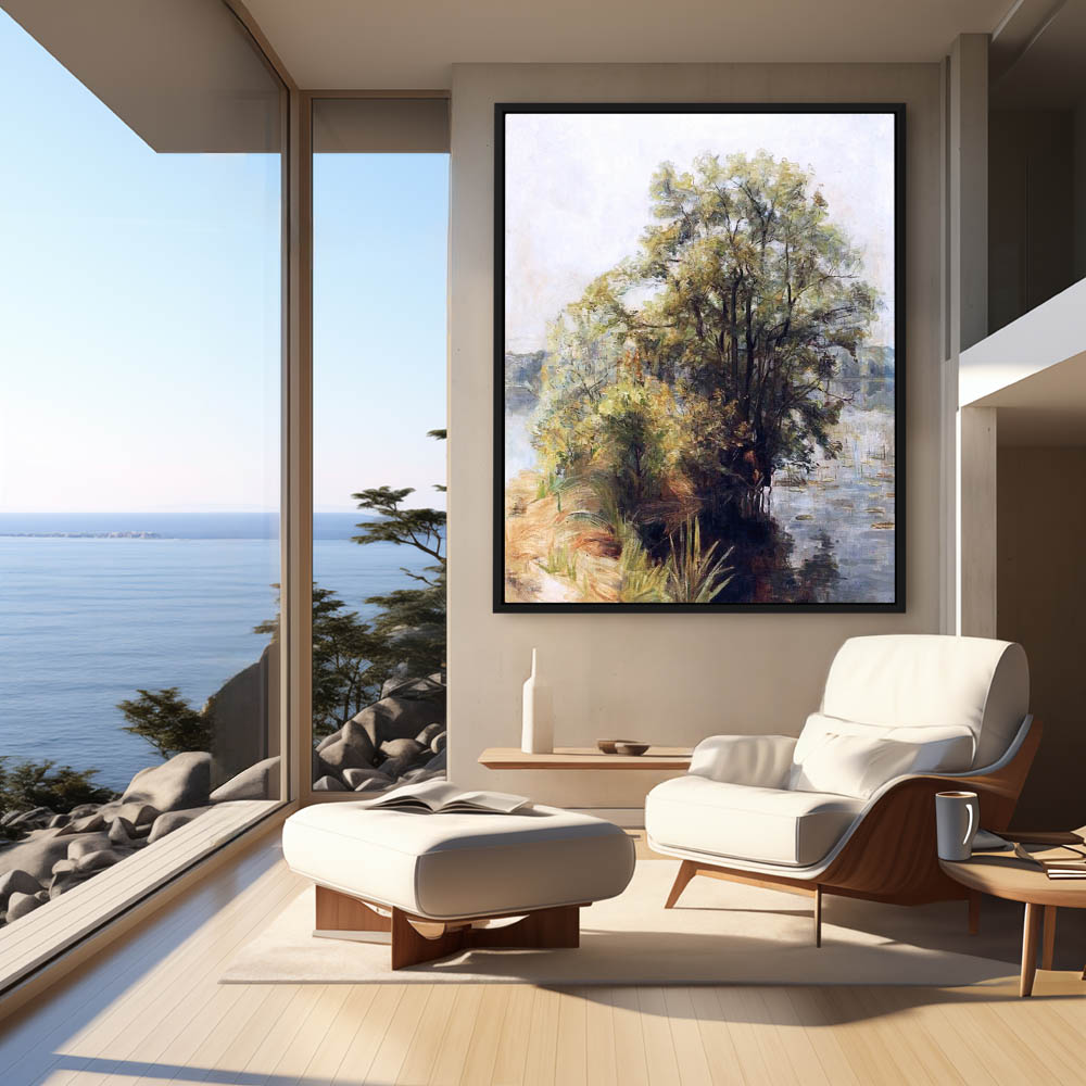 Painting of Ducks on the Sand on Shore and Swimming in the Shallows
