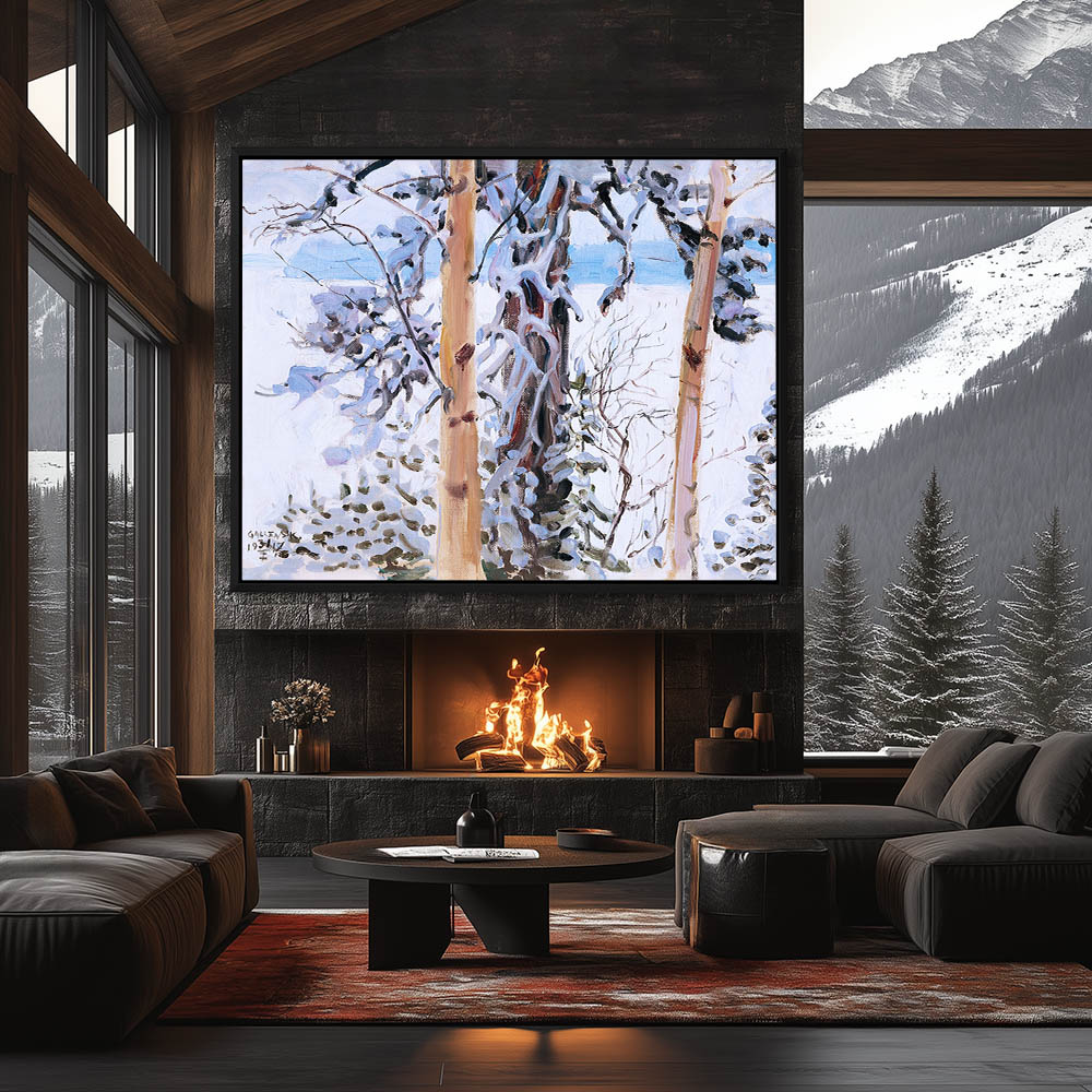 Winter Landscape Painting from Ruovesi with Trees and Snow