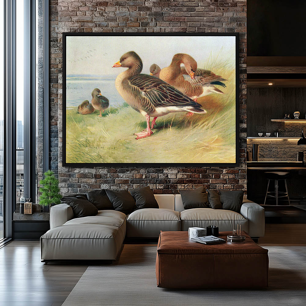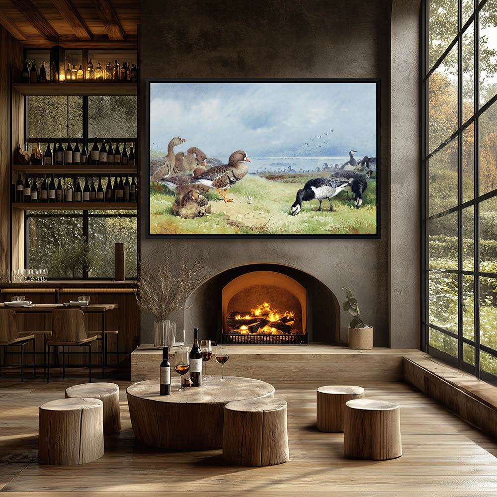 Painting of White Fronted and Barbacle Geese Forging in the Grass