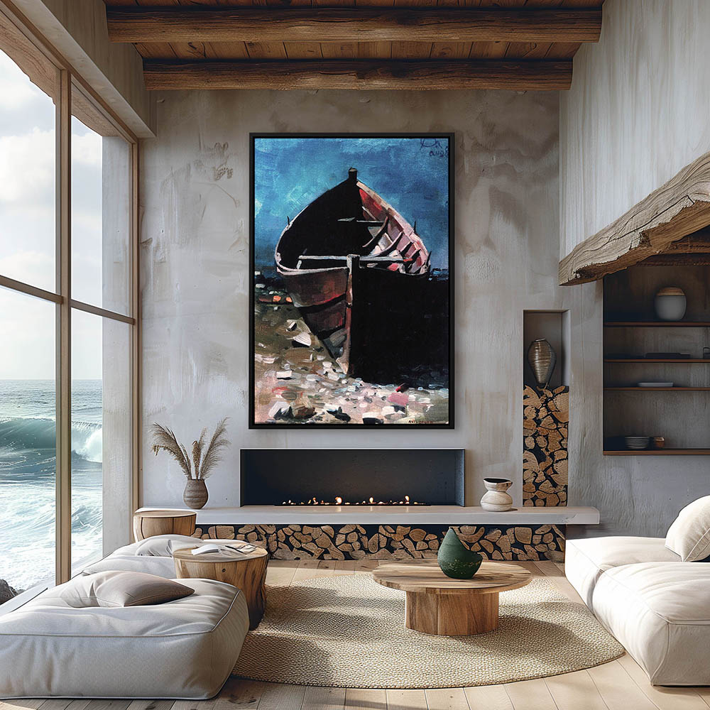 Lake Shore Painting with Boat