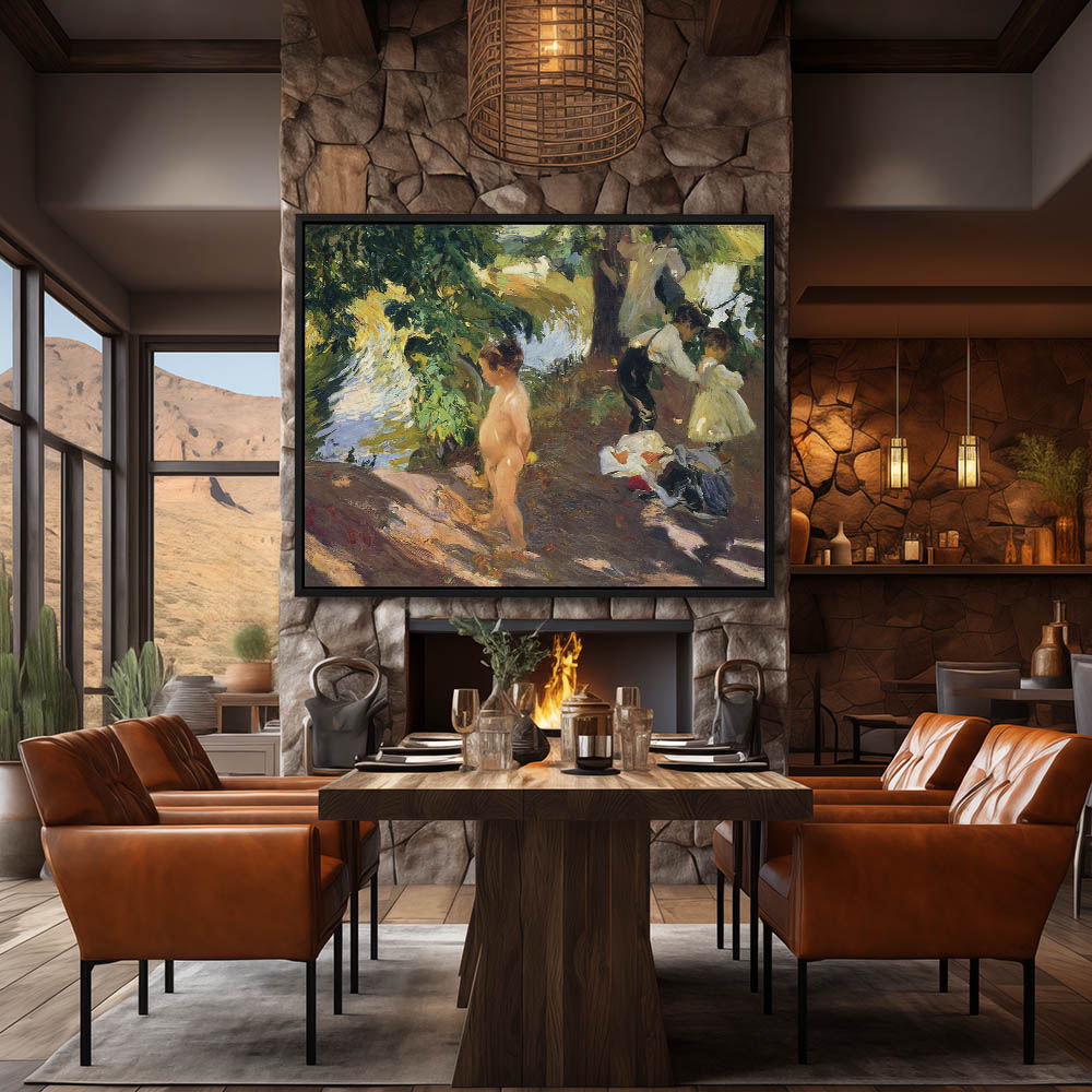 Children undressing in the shade before going to the water to bathe
