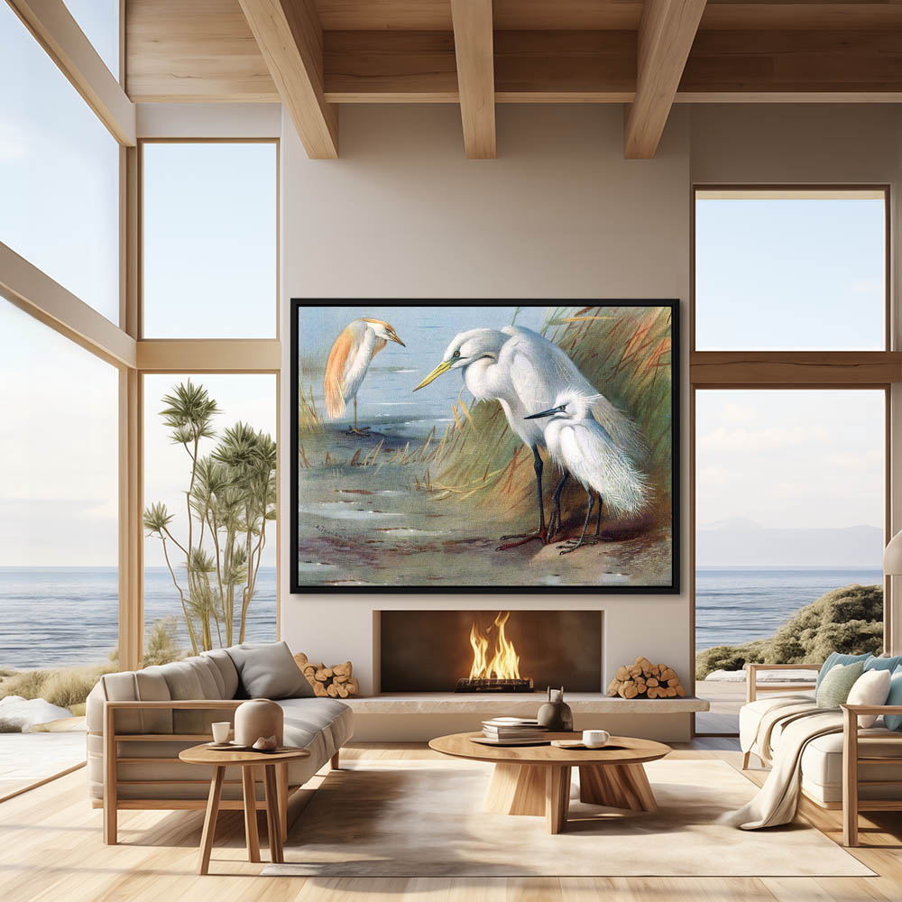 Mountain Landscape Painting with Pheasants Resting on a Limb