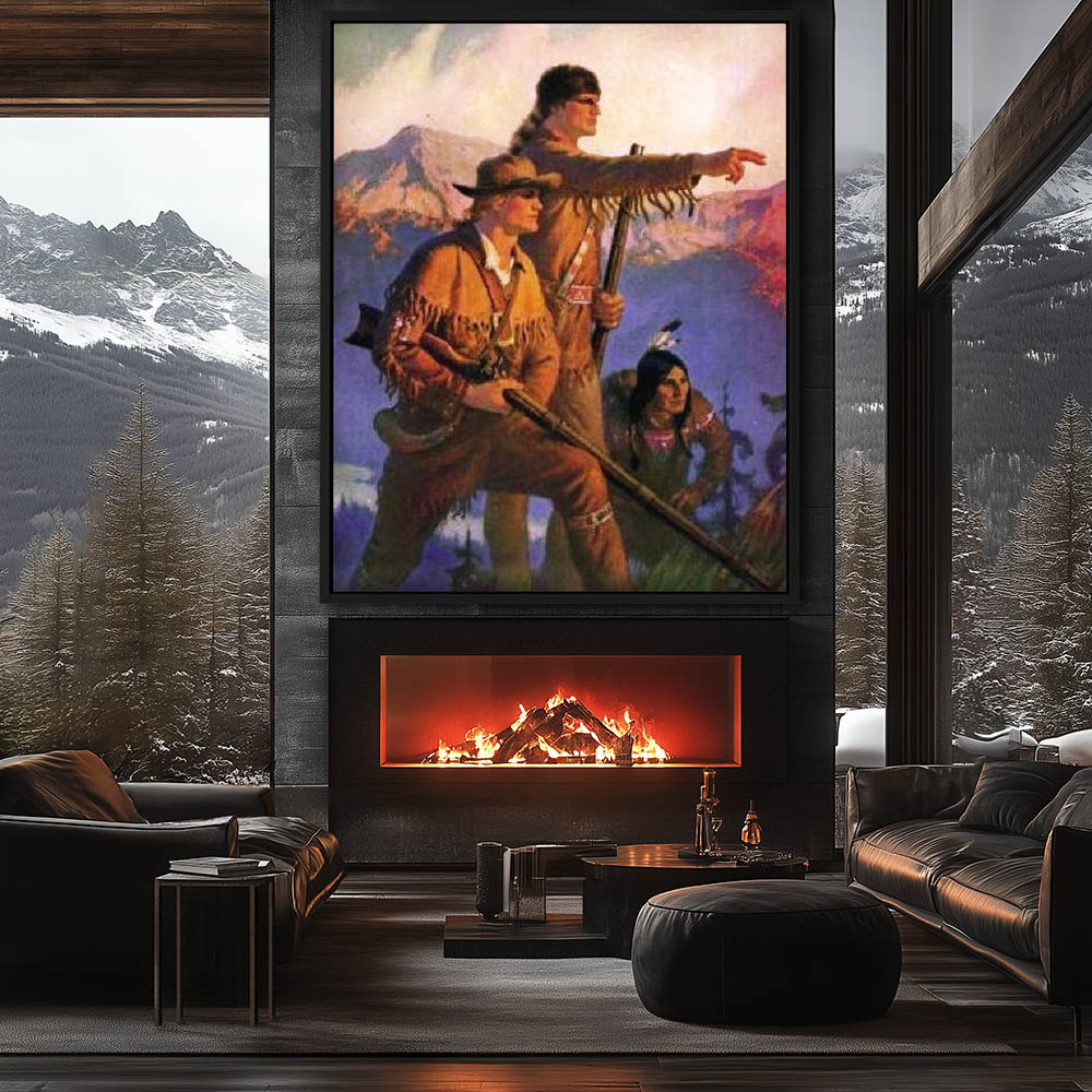 Figurative Painting of Lewis and Clark with an American Indian