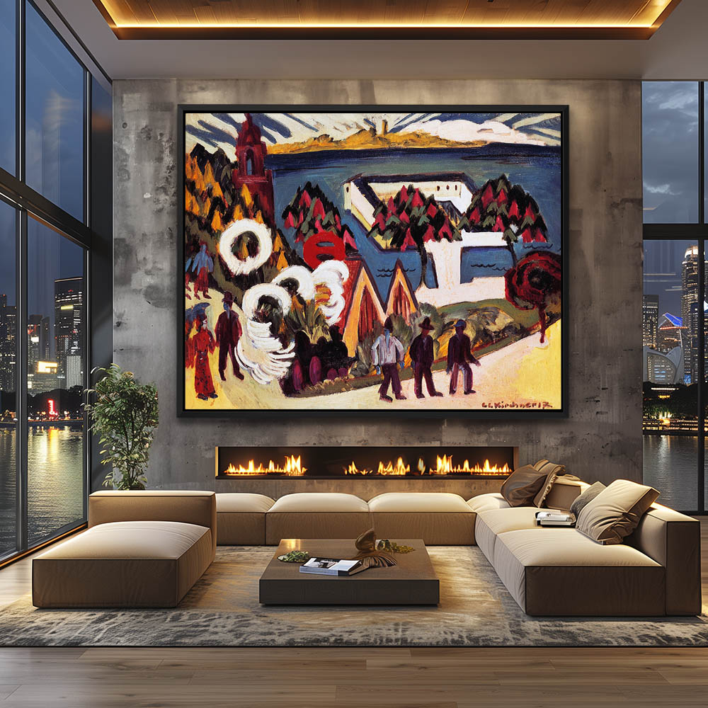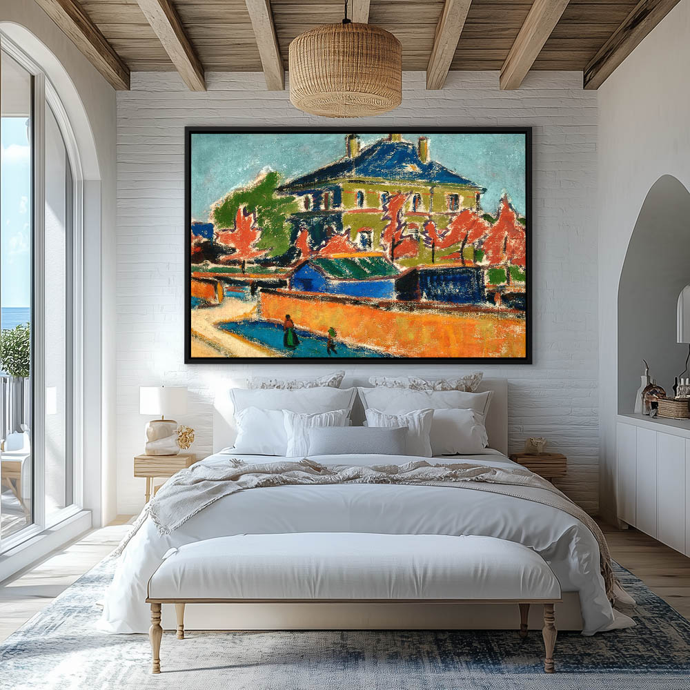 Village with blue roads
