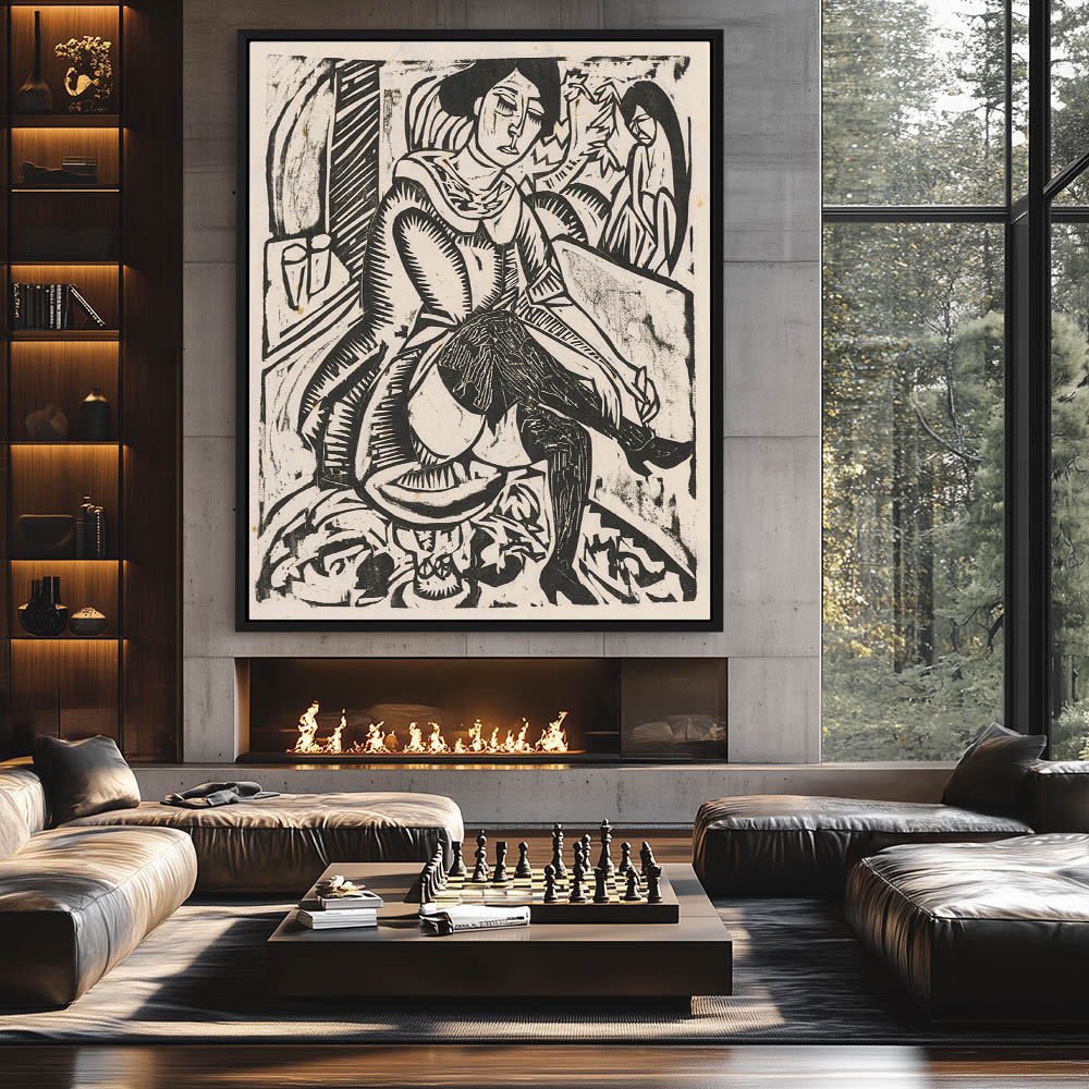 Abstract depiction of a woman bathing
