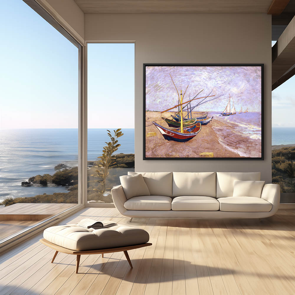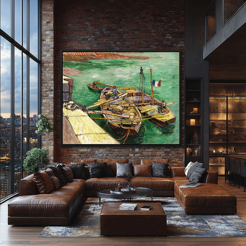 From $31.97Impressionist Abstract Landscape Painting of Seascape with Figures in Boats at Shore