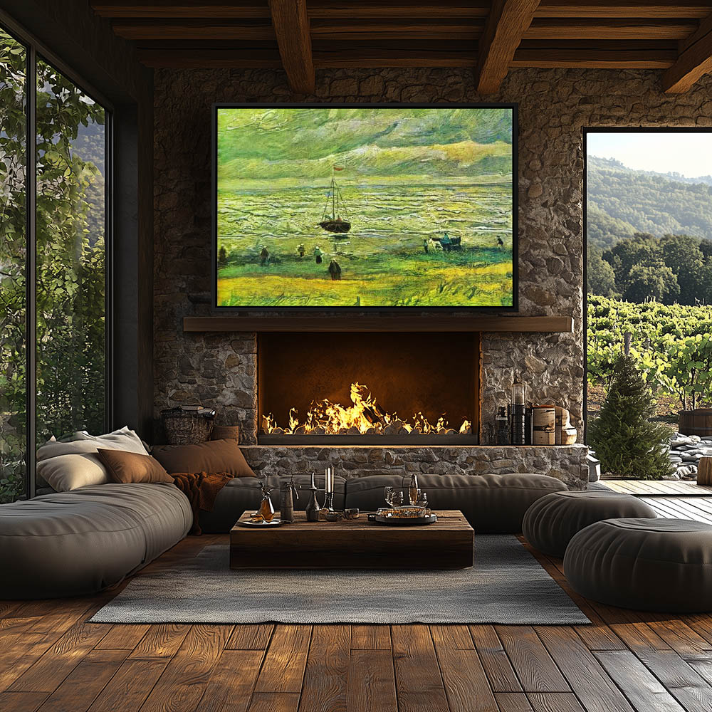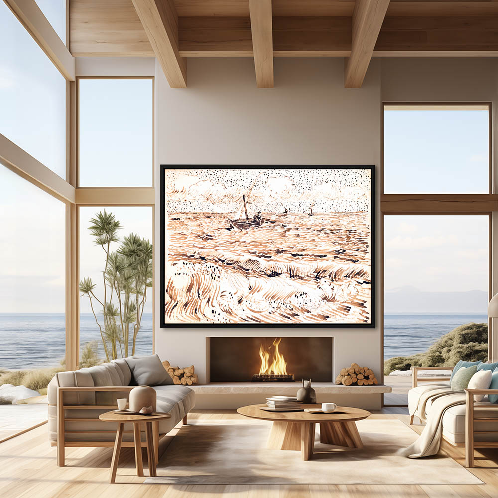 Impressionist Seascape with Figures on Shore and a Boat at Sea