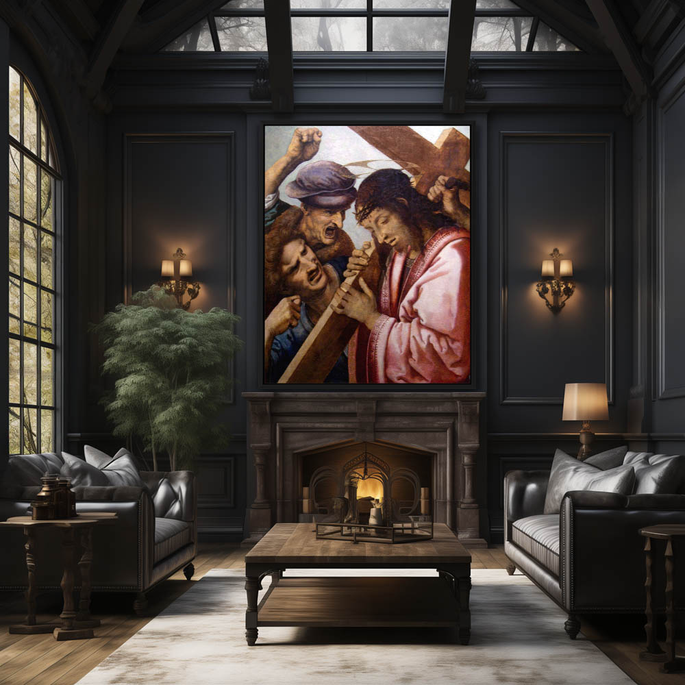 Eugene Delacroix Vintage Paintings of Jesus Christ of the Cross, a classic vintage art print for wall decor, this painting come in a variety of sizes and formats to suit any style, including metal wall art, metal prints, vinyl wall prints, peel-and-stick vinyl, vinyl wall peel, fine art prints, framed prints, poster prints, poster art, poster wall art, stretched canvas, and framed canvas wall art with floater frames available in black, brown, or white.