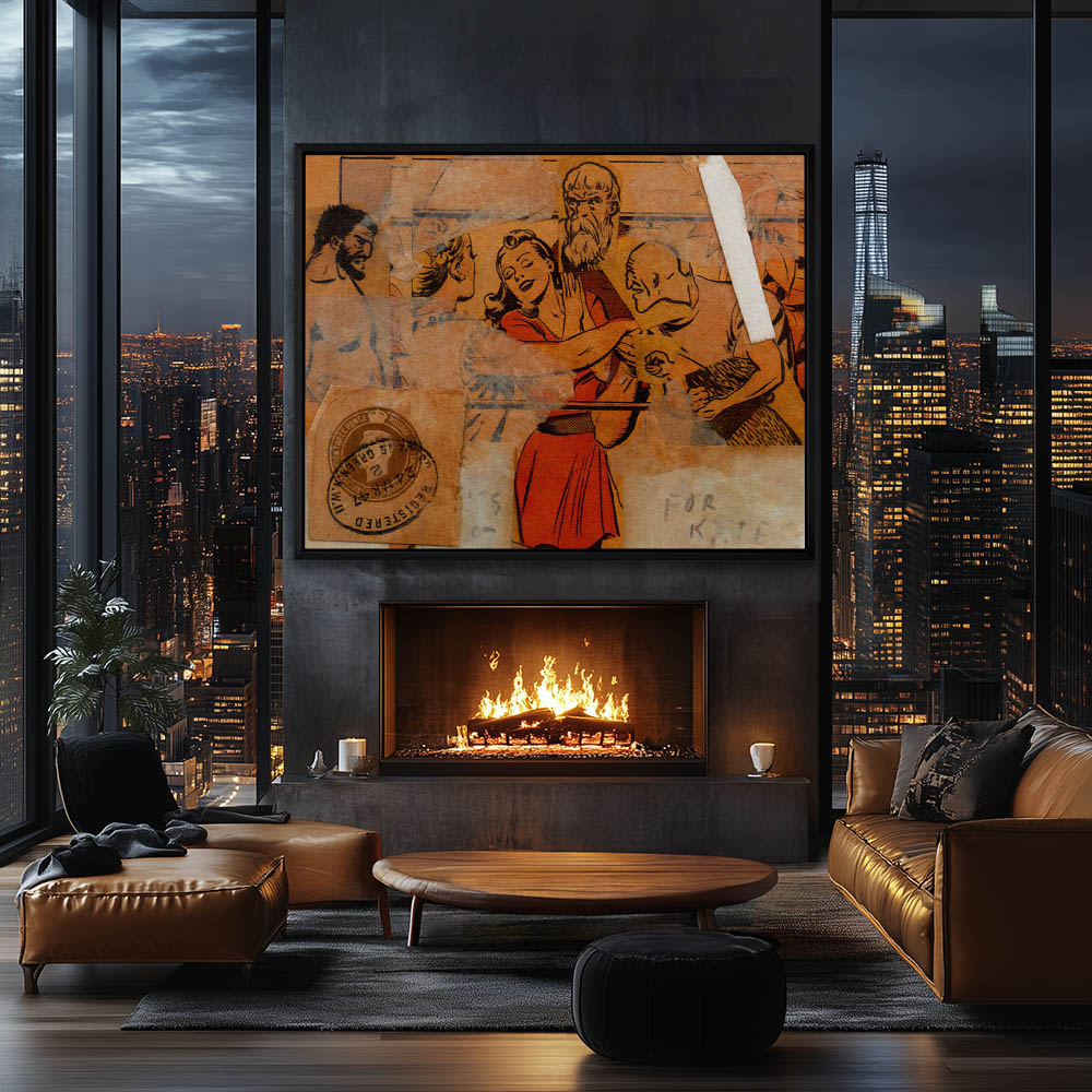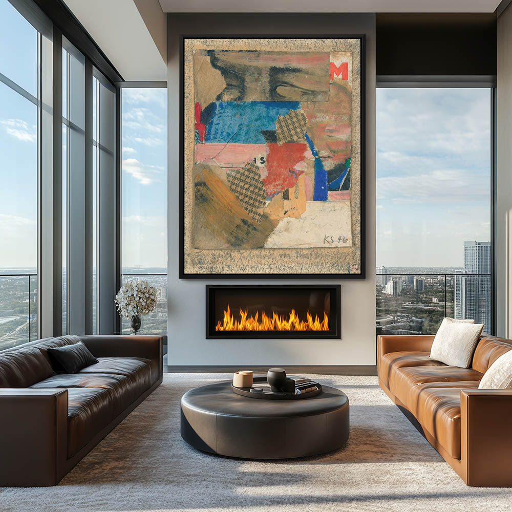 From $31.97Abstract collage with patterned paper, feather, and printed text