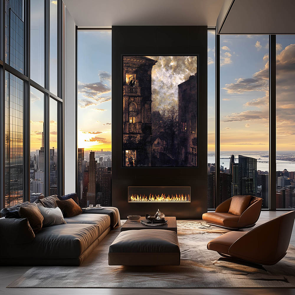 Vintage Seascape Painting with Sailboats at Sea under the Moonlight