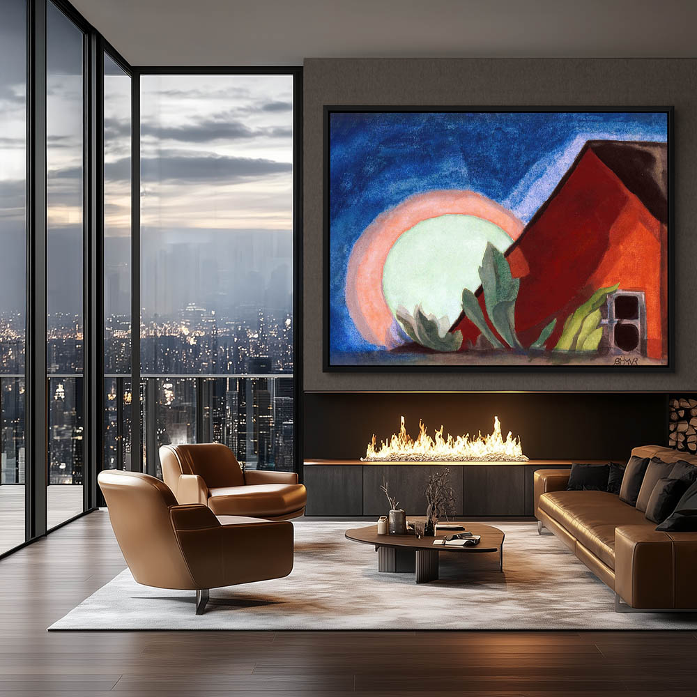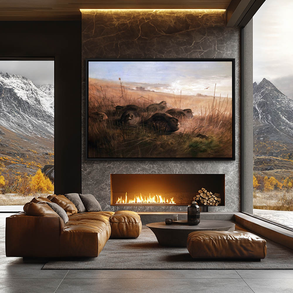 Painting of Grey Partridge Gamebirds in the Cut Farmfields under the Moonlight