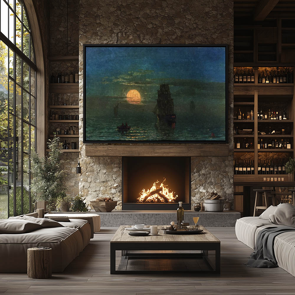 Ships at sea in the moonlight