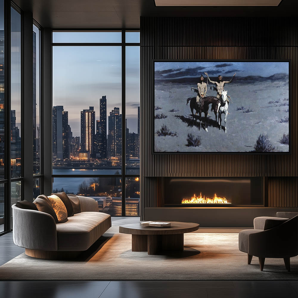 Two indians on horseback in the moonlight