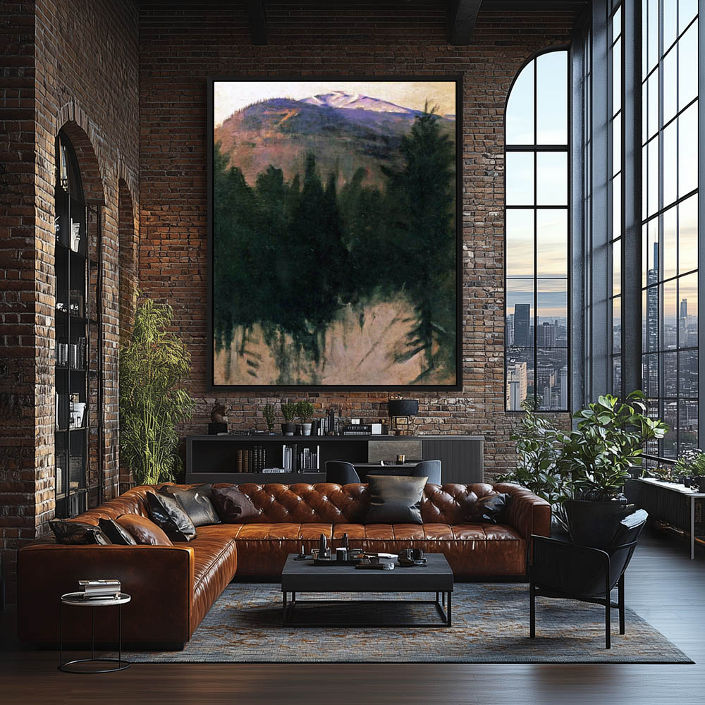 Mountain Landscape Painting with a Covey of Blackgame Resting in the Limbs