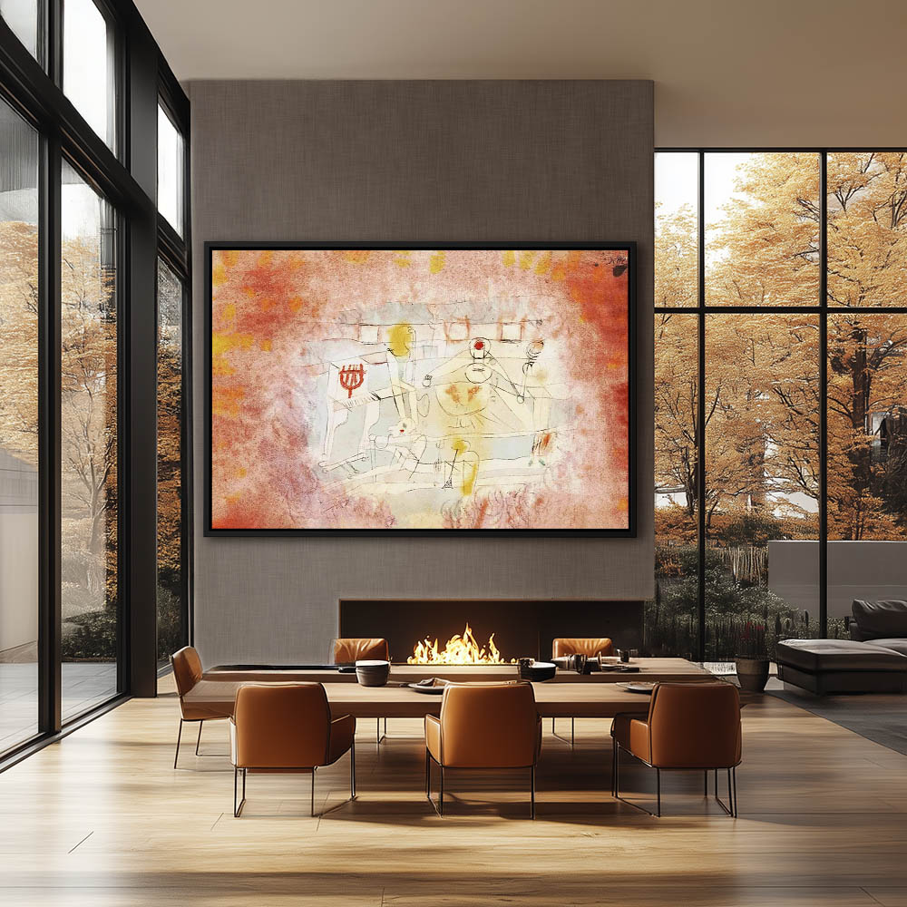 Interior Painting with Two Females Playing a Tune on a Banjo