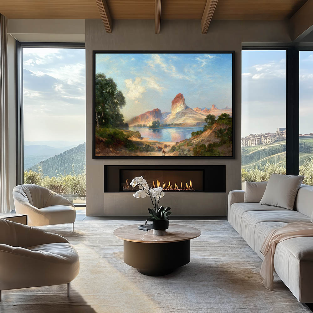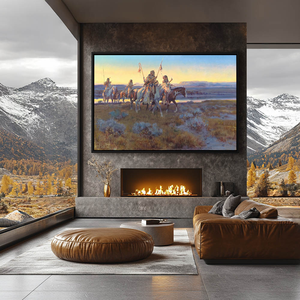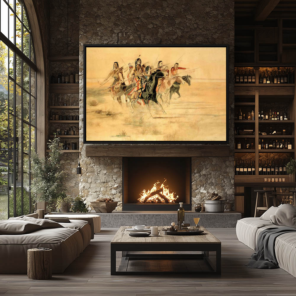 From $29.97Vast landscape with mountains in the distance, a large lake and Indians on horseback traveling to the water through a valley in the foreground