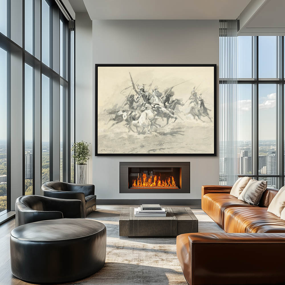 Indians on horseback with spears and guns