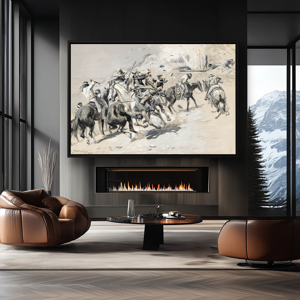 Indians and horses shocked and surprised by a dynamite explosion in a nearby mine